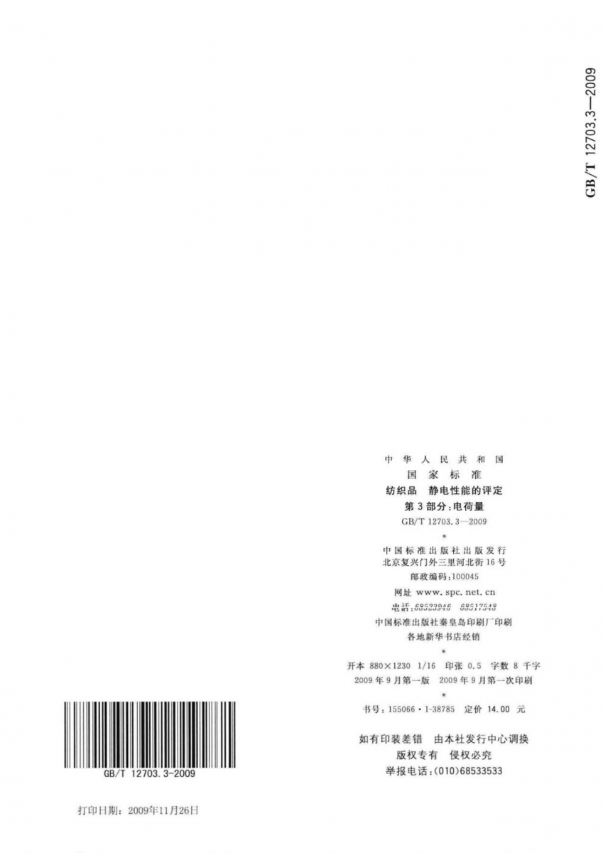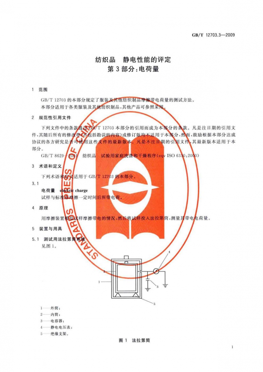 GB/T 12703.3-2009 纺织品 静电性能的评定 第3部分:电荷量