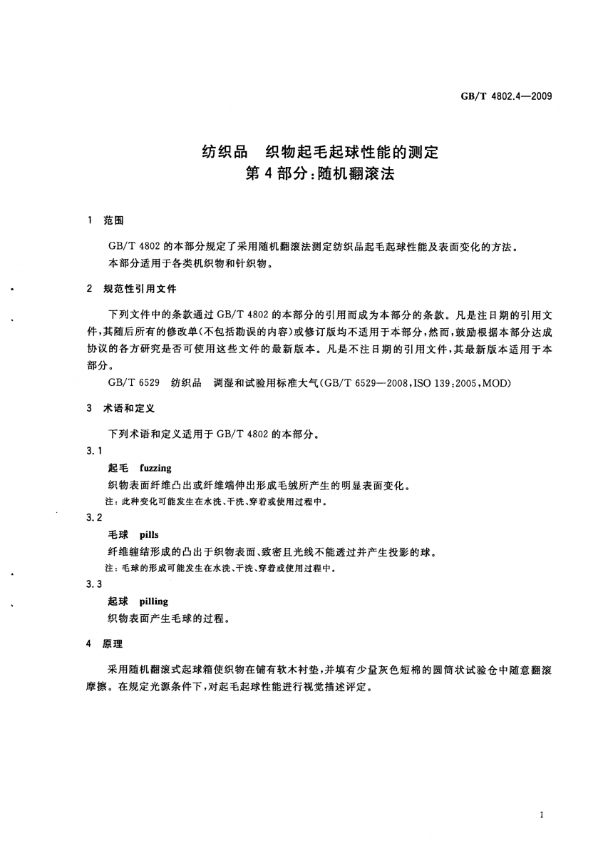 GB/T 4802.4-2009 纺织品 织物起毛起球性能的测定 第4部分 随机翻滚法