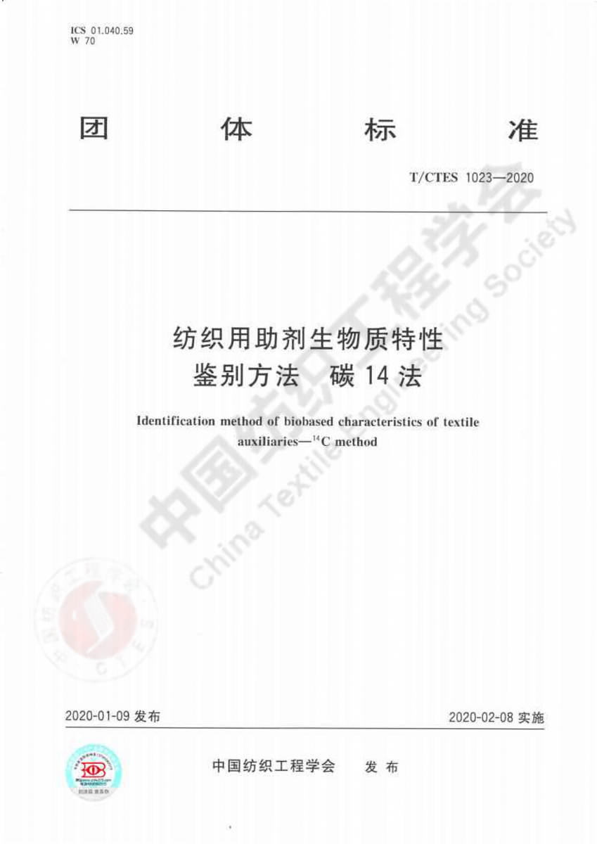 T/CTES 1023-2020 纺织用助剂生物质特性鉴别方法 碳14法