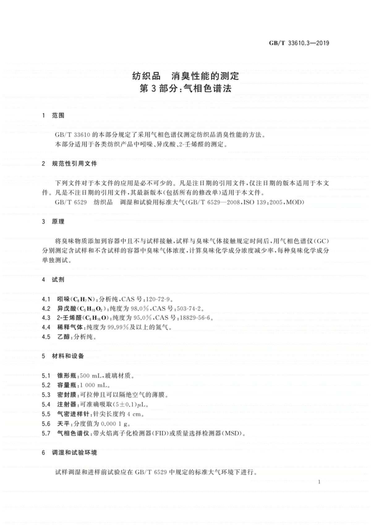 GB/T 33610.3-2019 纺织品消臭性能的测定 第3部分:气相色谱法
