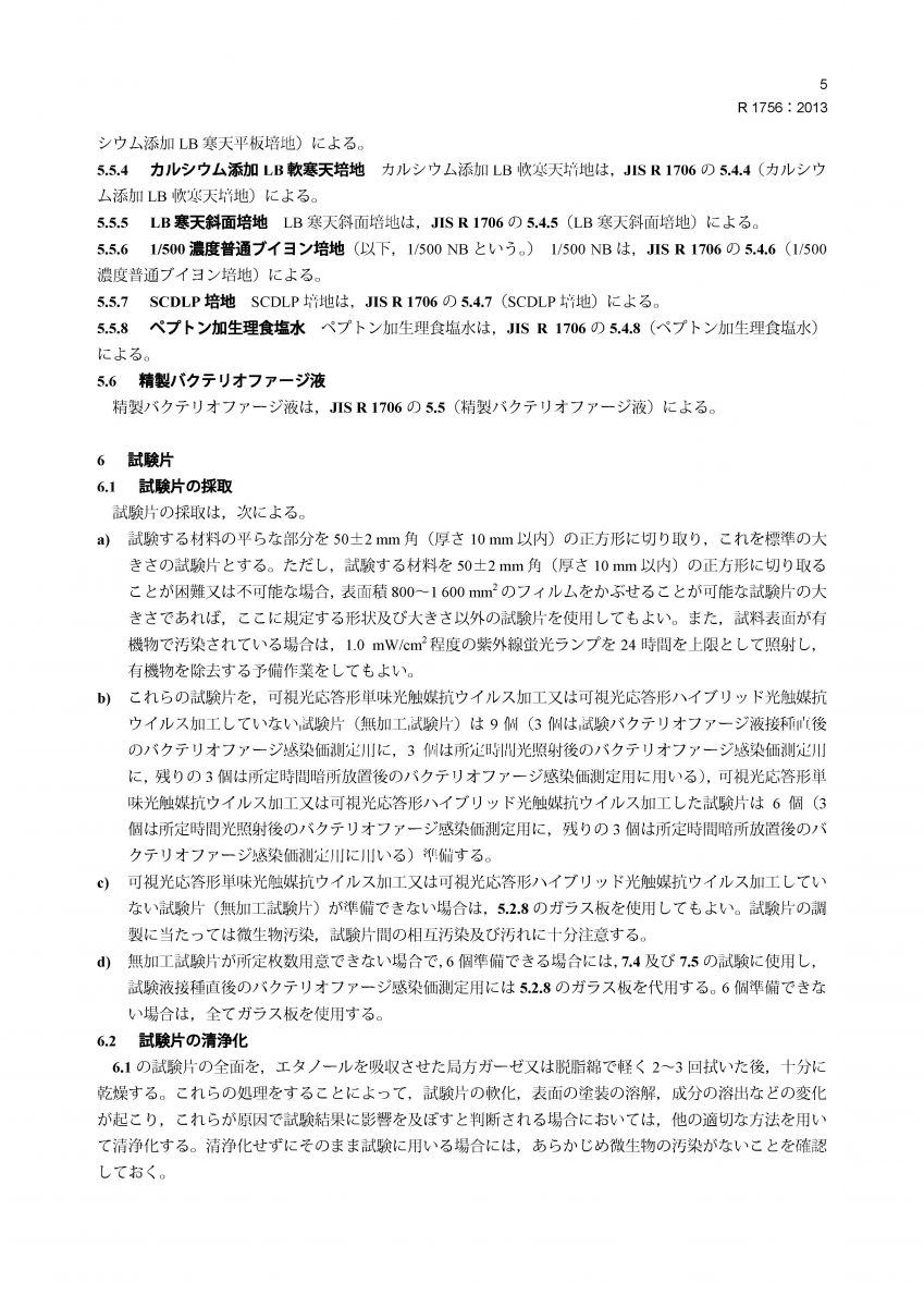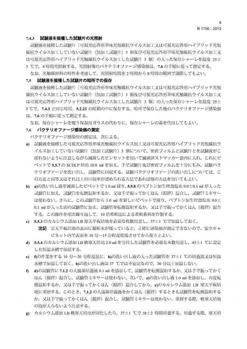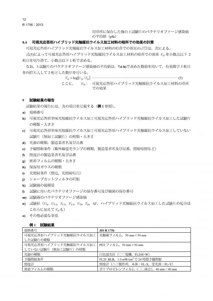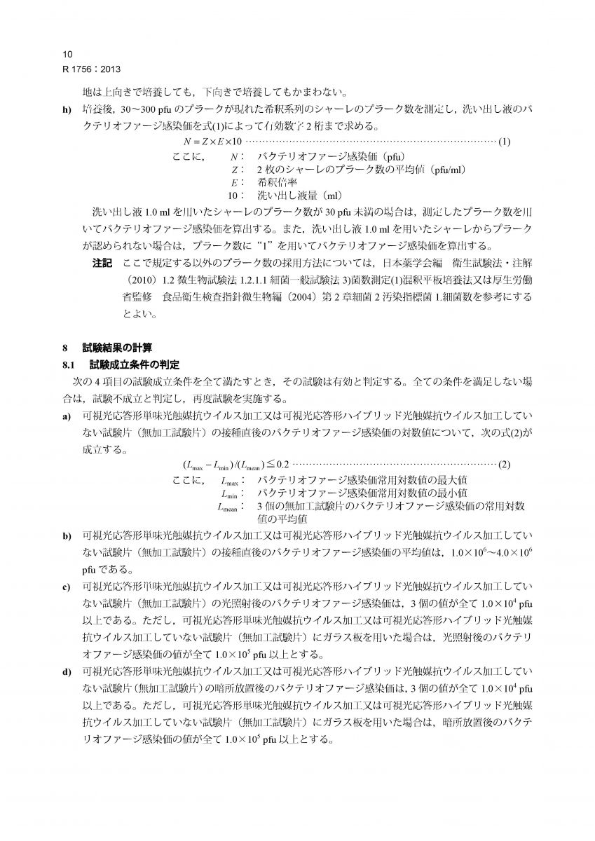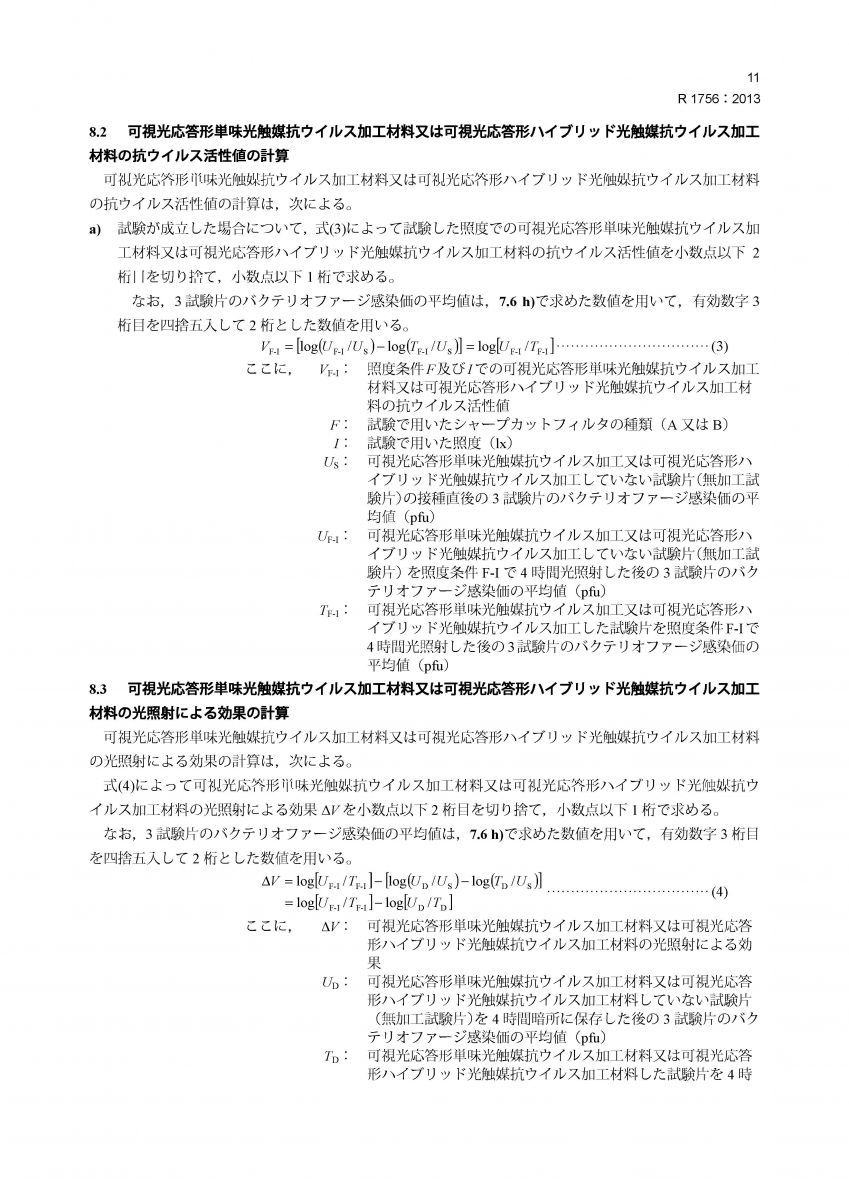 JIS R 1756-2013 ファインセラミックス―可視光応答形光触媒材料の抗ウイルス性試験方法