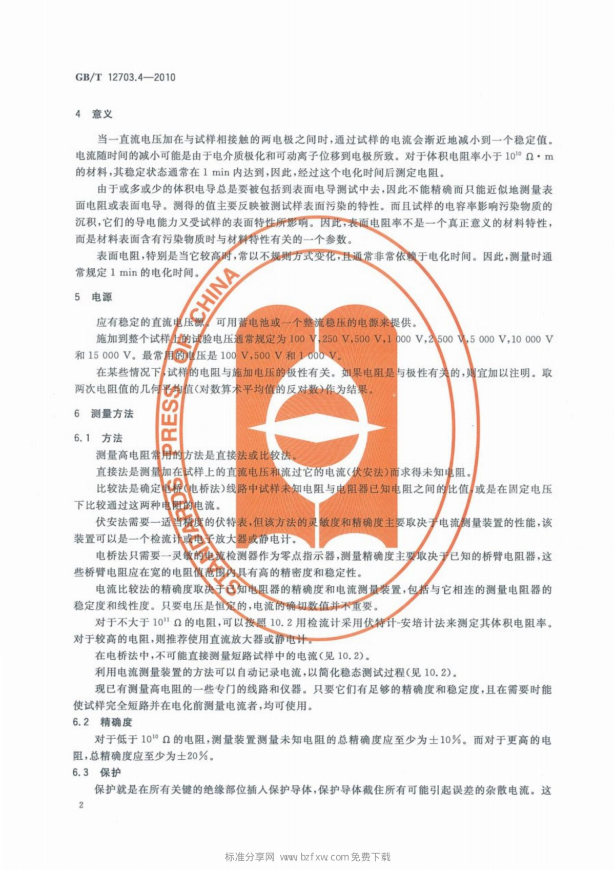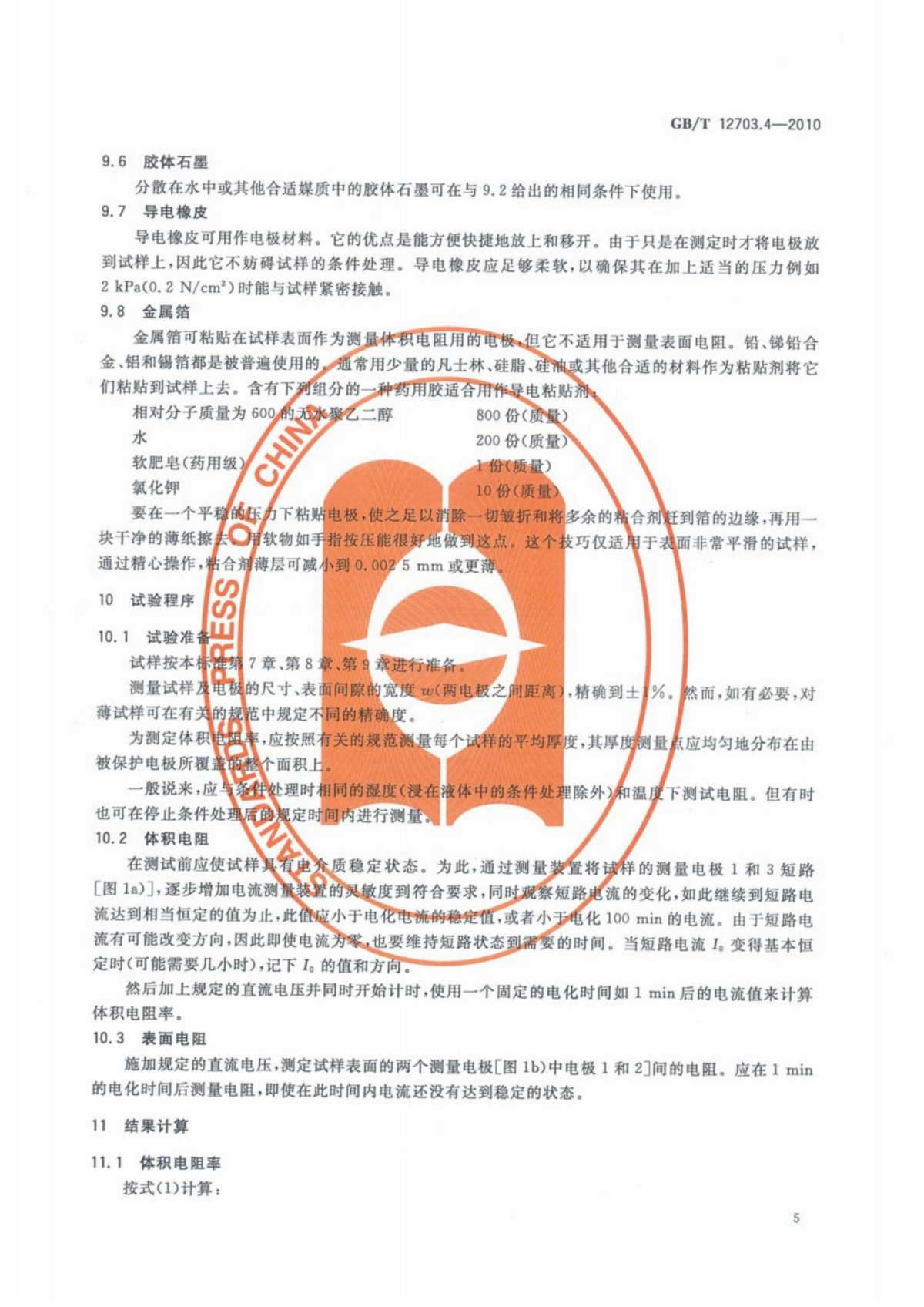 GB/T 12703.4-2010 纺织品 静电性能的评定 第4部分:电阻率