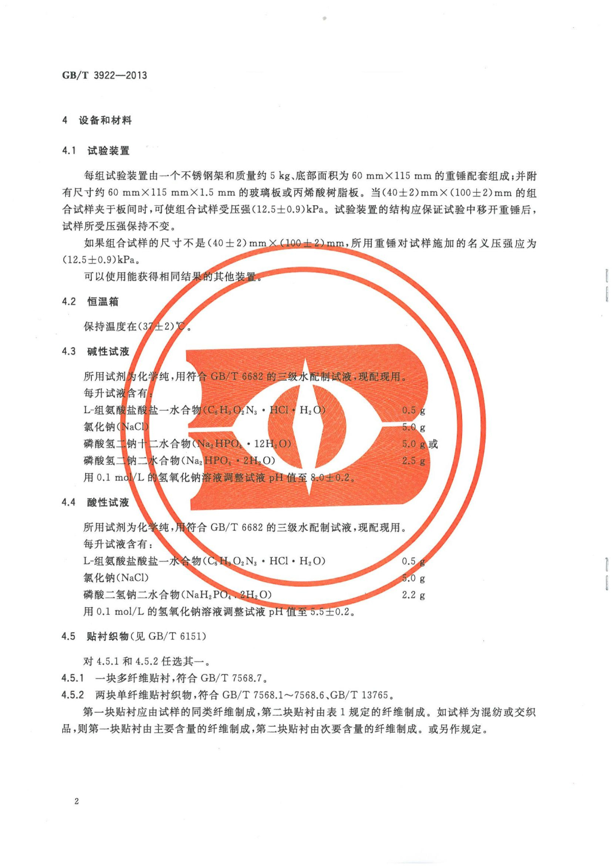GB/T 3922-2013 纺织品 色牢度试验 耐汗渍色牢度