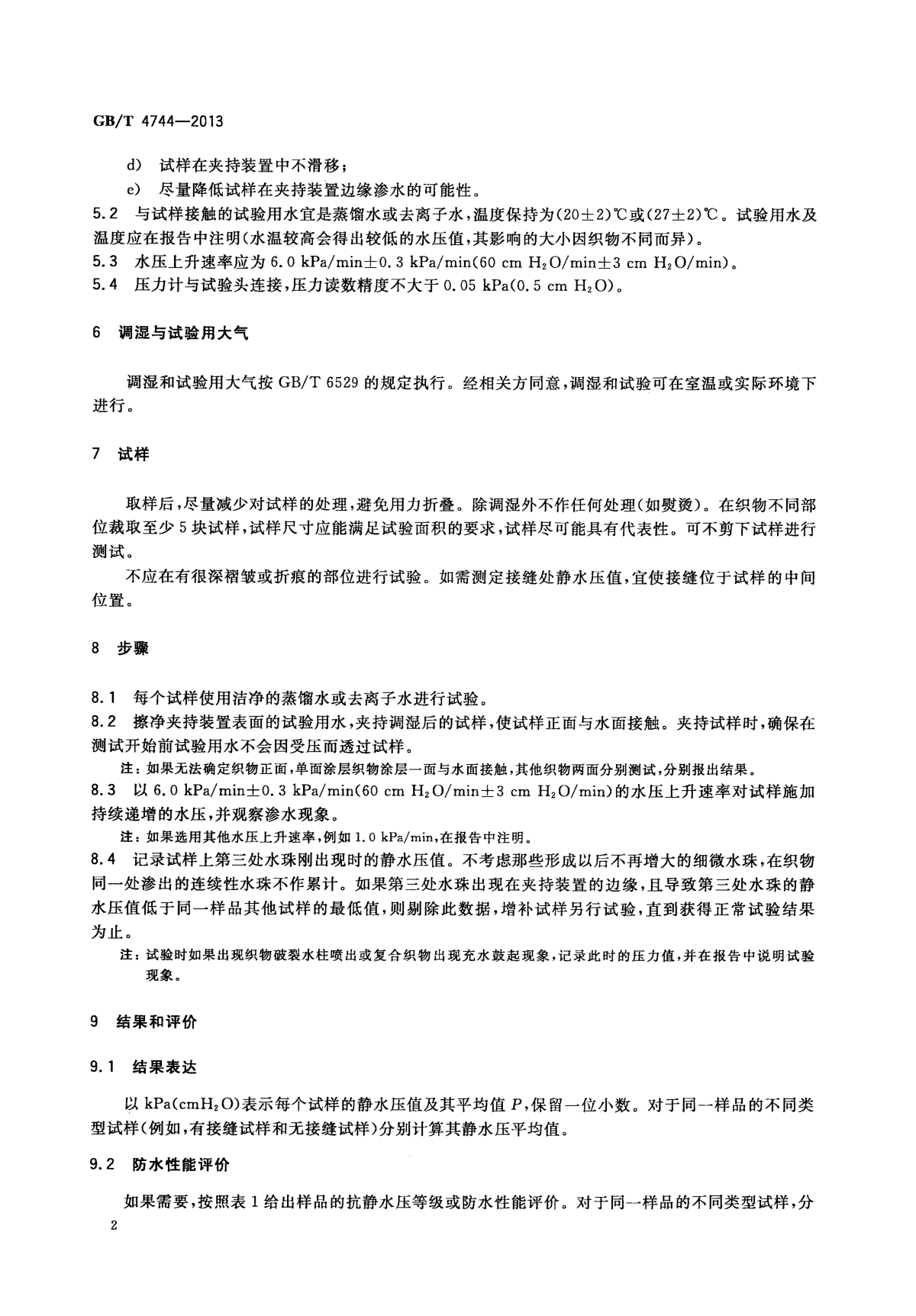 GB/T 4744-2013 纺织品 防水性能的检测和评价 静水压法