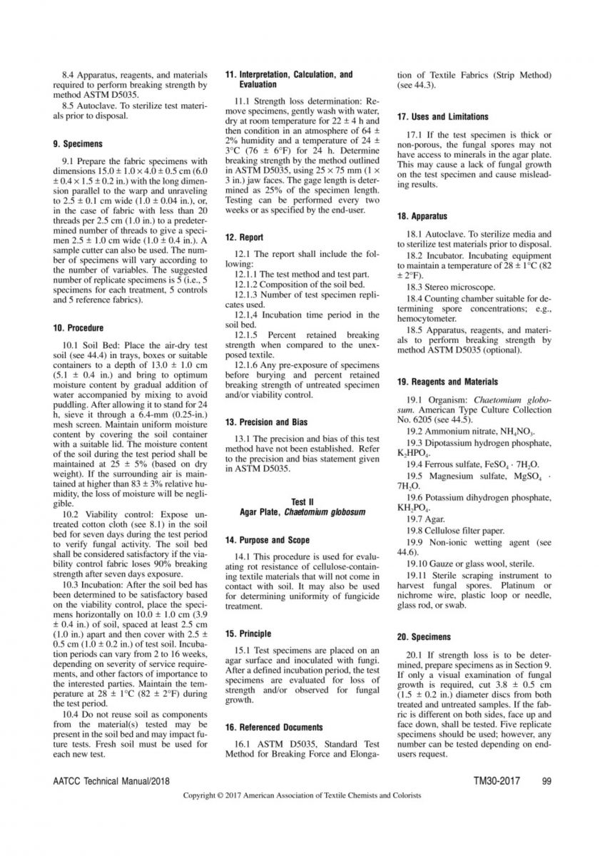 AATCC 30-2017 纺织材料的防霉活性和评价