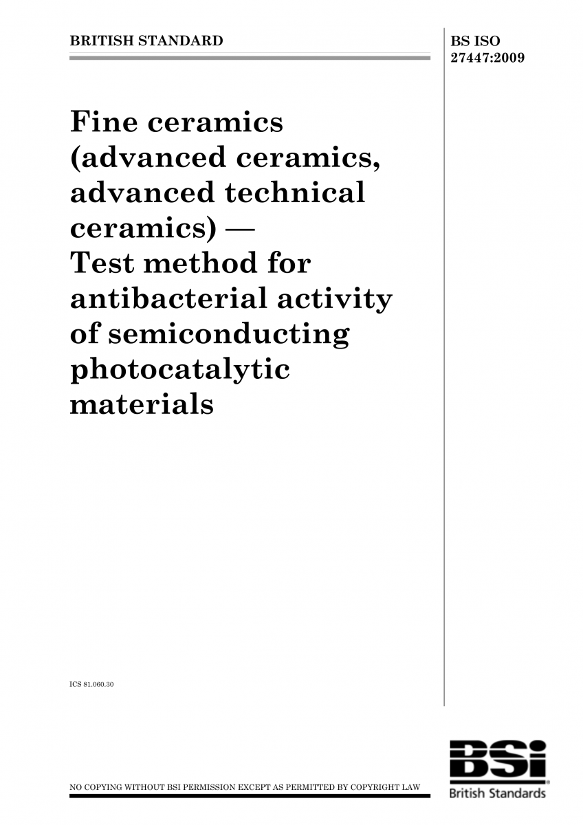 ISO 27447-2009 精细陶瓷.(高级陶瓷,高级工业陶瓷).半导体光催化材料的抗菌活性用测试方法