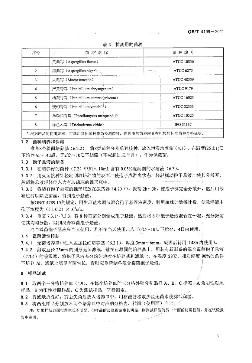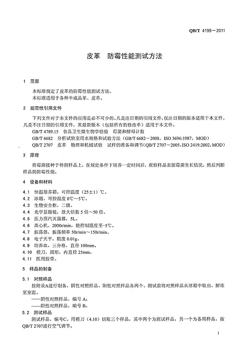 QB/T 4199-2011皮革 防霉性能测试方法