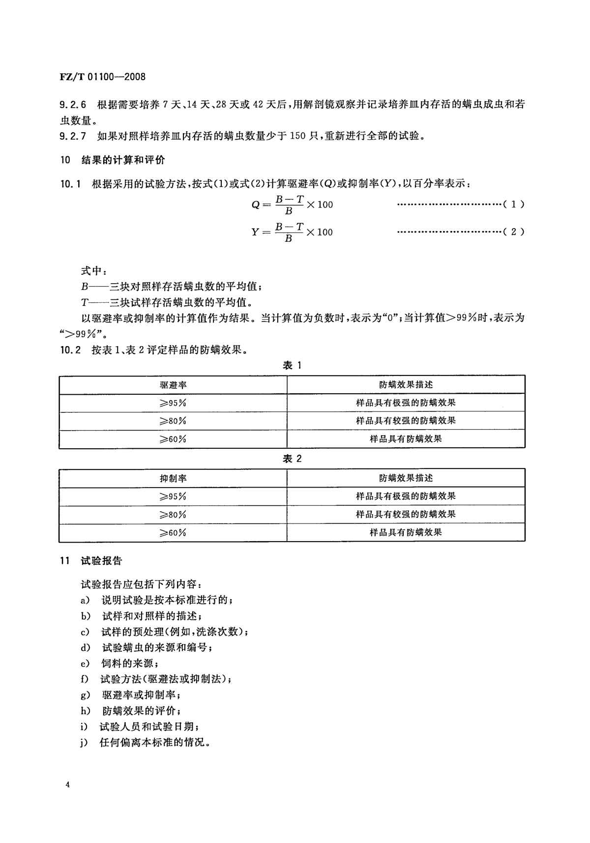 FZ/T 01100-2008 纺织品防螨性能的评定