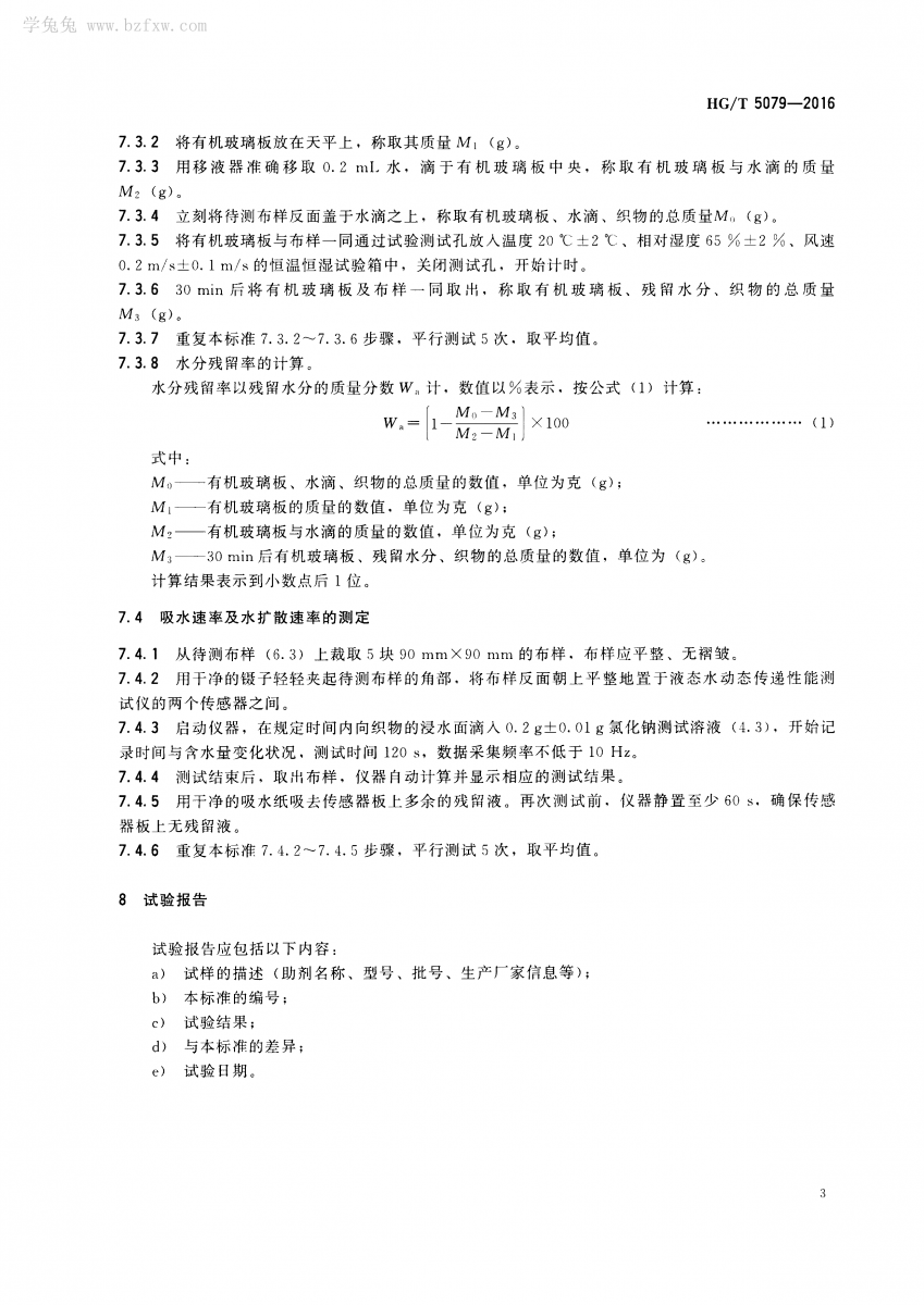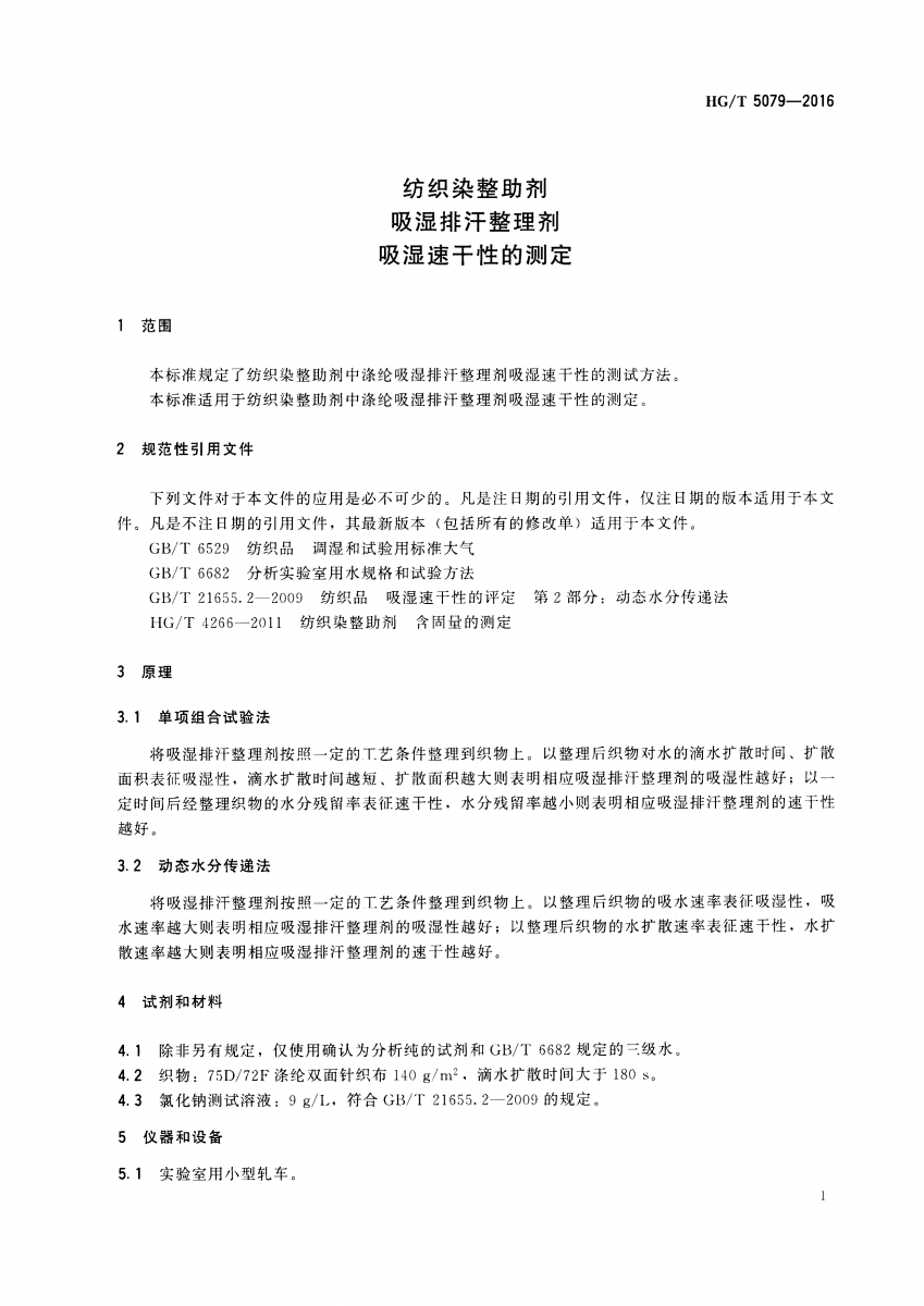 HG/T 5079-2016 纺织染整助剂 吸湿排汗整理剂 吸湿速干性的测定