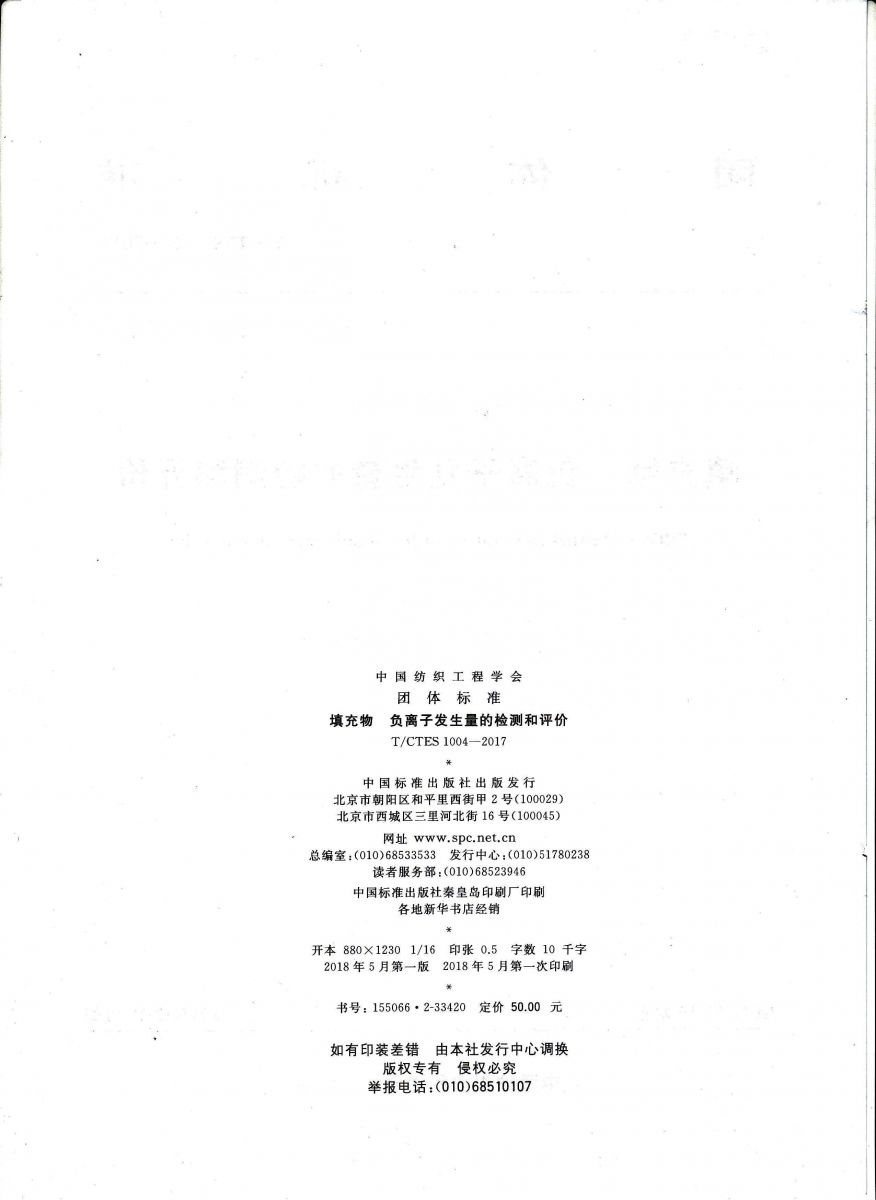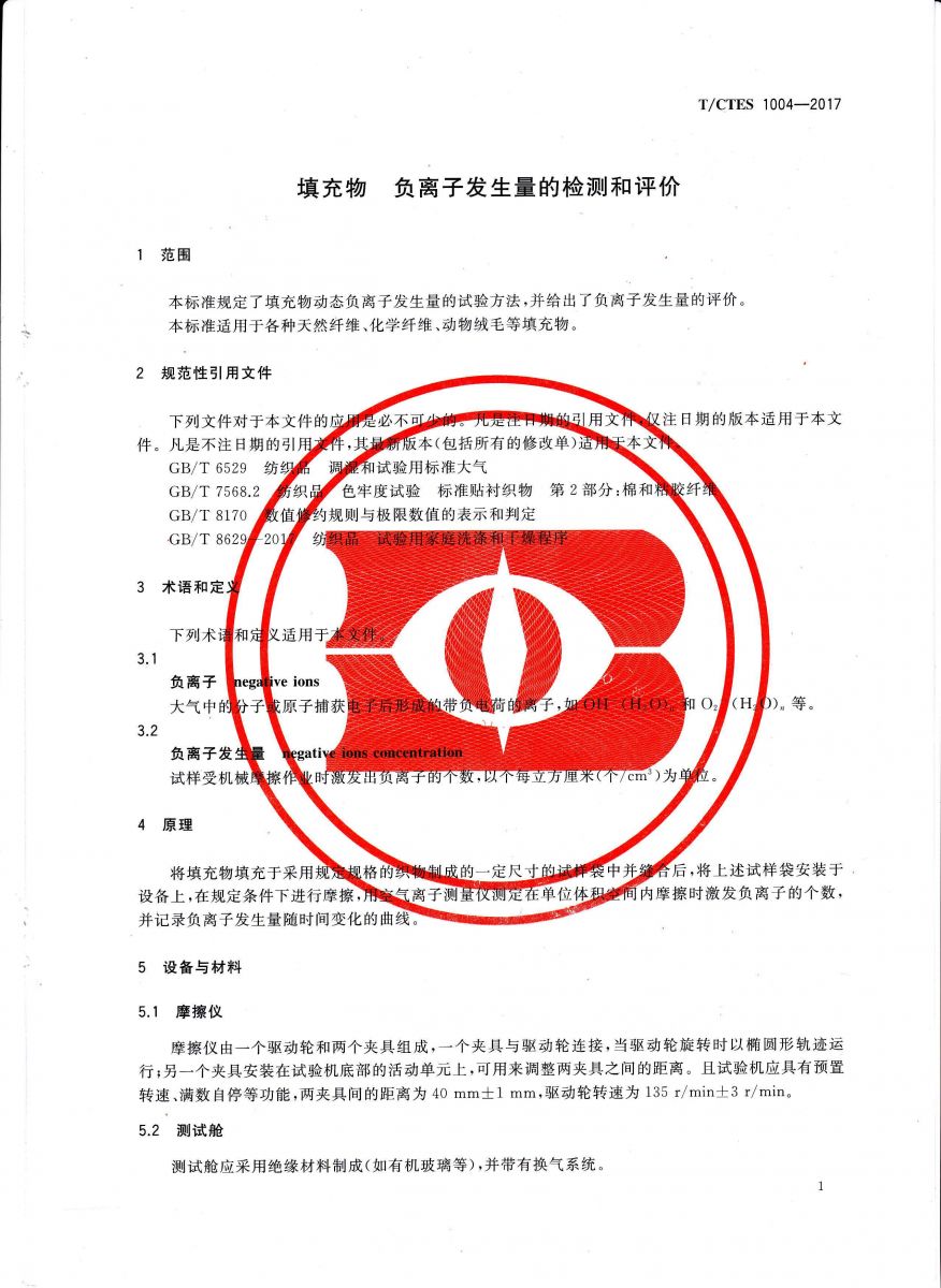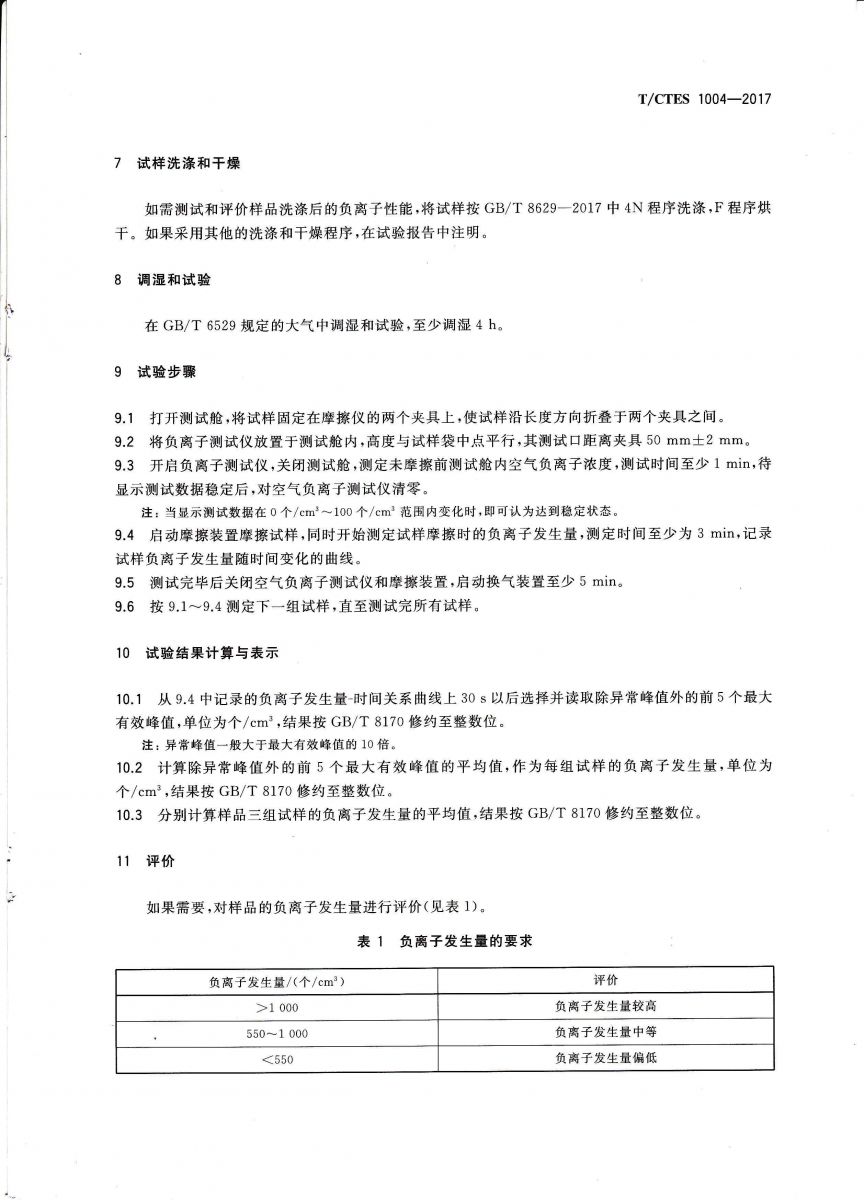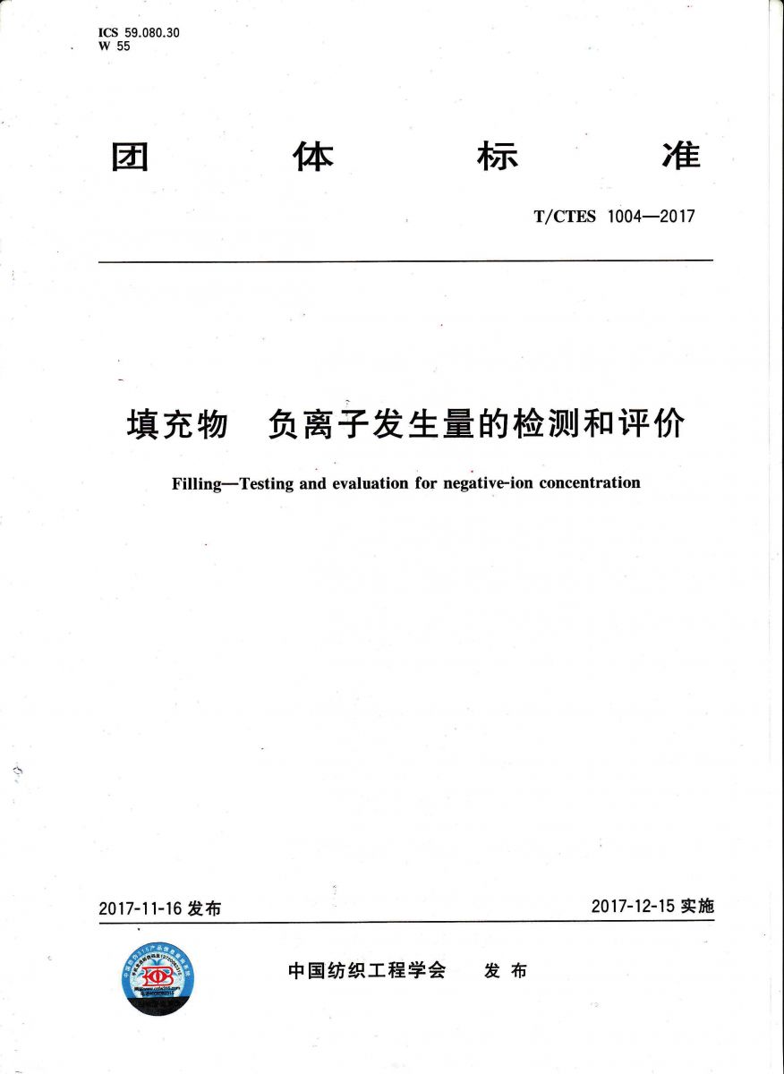 T/CTES 1004-2017 填充物 负离子发生量的检测和评价