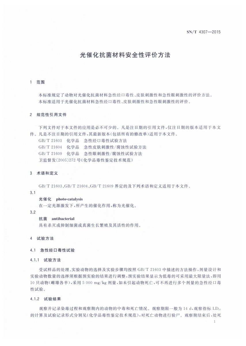 SN/T-4307-2015 光催化抗菌材料安全性评价方法