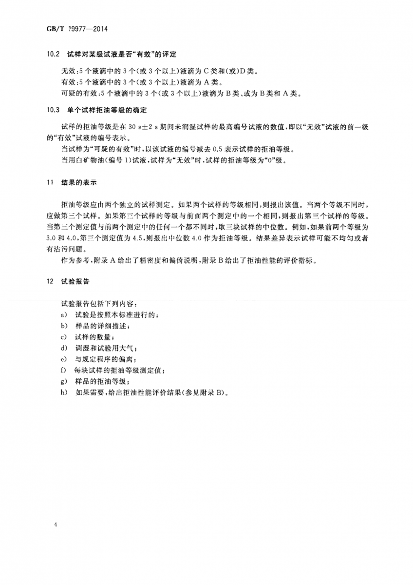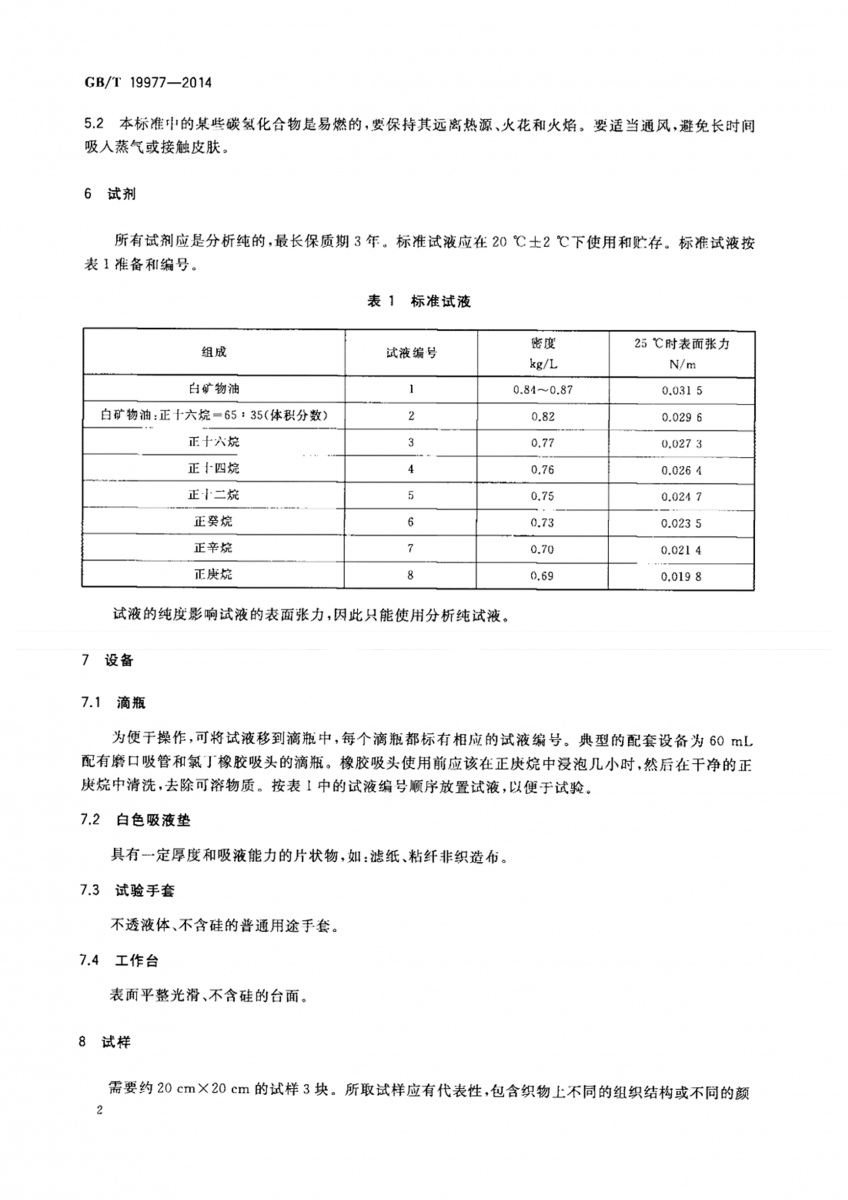 GB/T 19977-2014 纺织品 拒油性 抗碳氢化合物试验