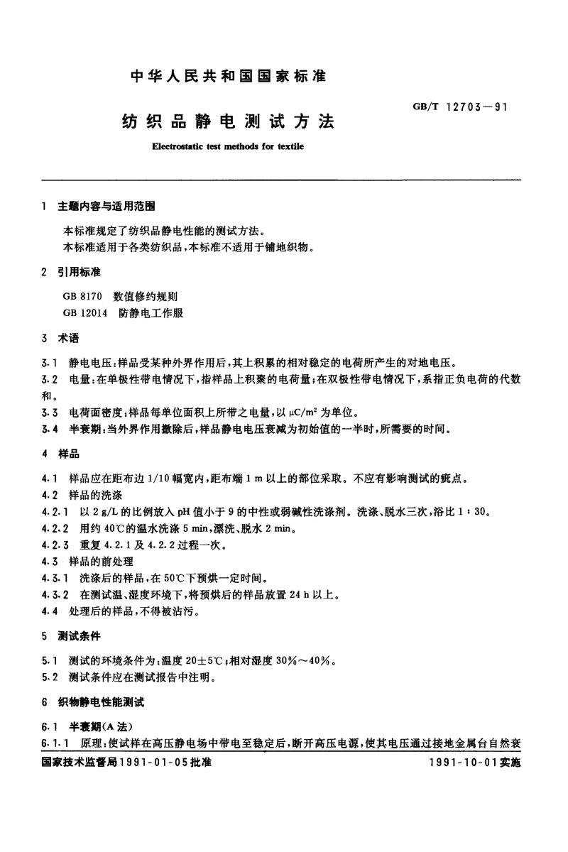 GB/T 12703-91 纺织品静电测试方法