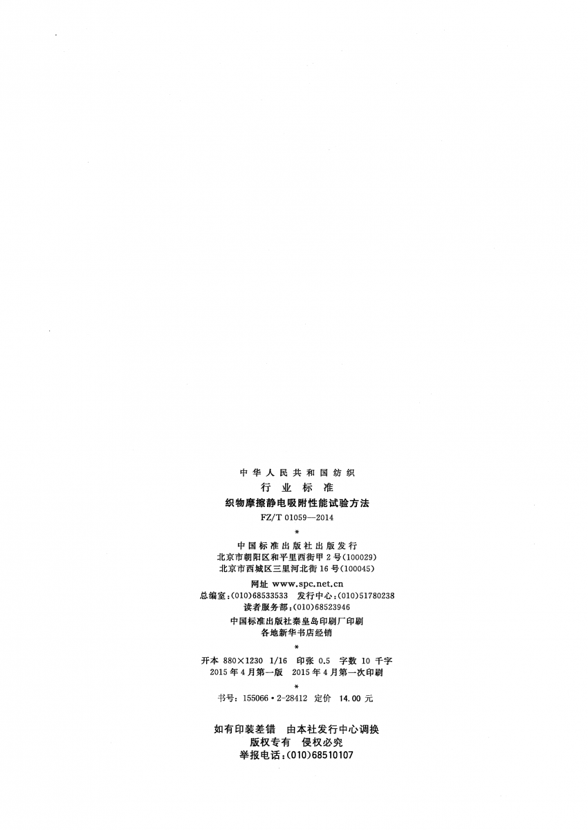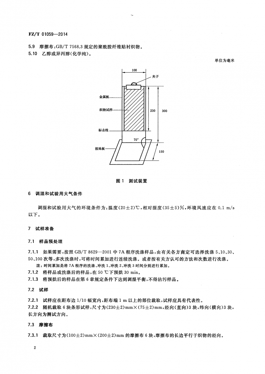 FZ/T 01059-2014 织物摩擦静电吸附性能试验方法