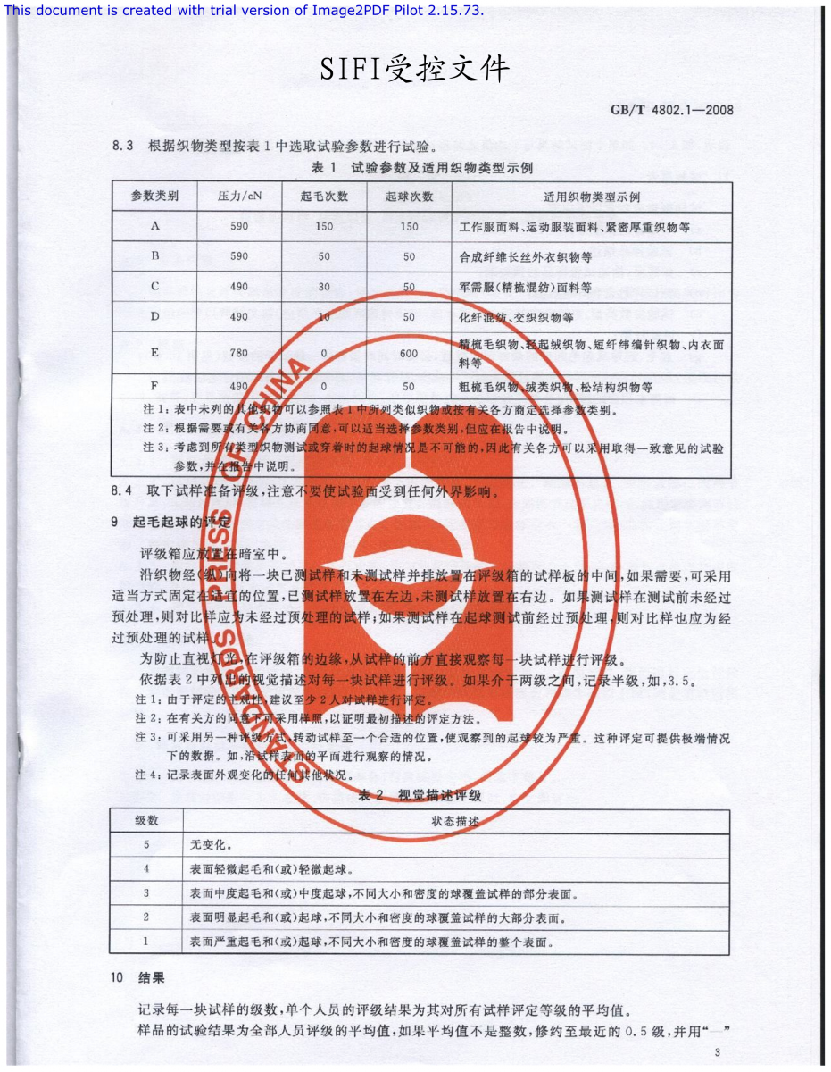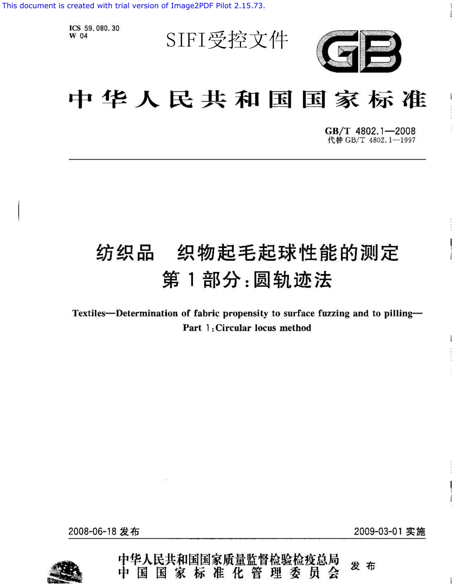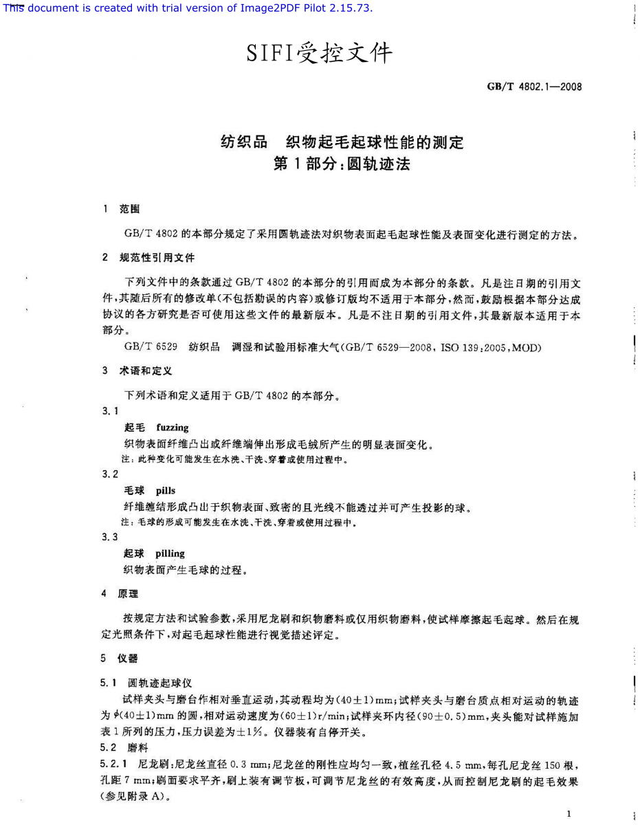 GB/T 4802.1-2008 纺织品 织物起毛起球性能的测定 第1部分 圆轨迹法
