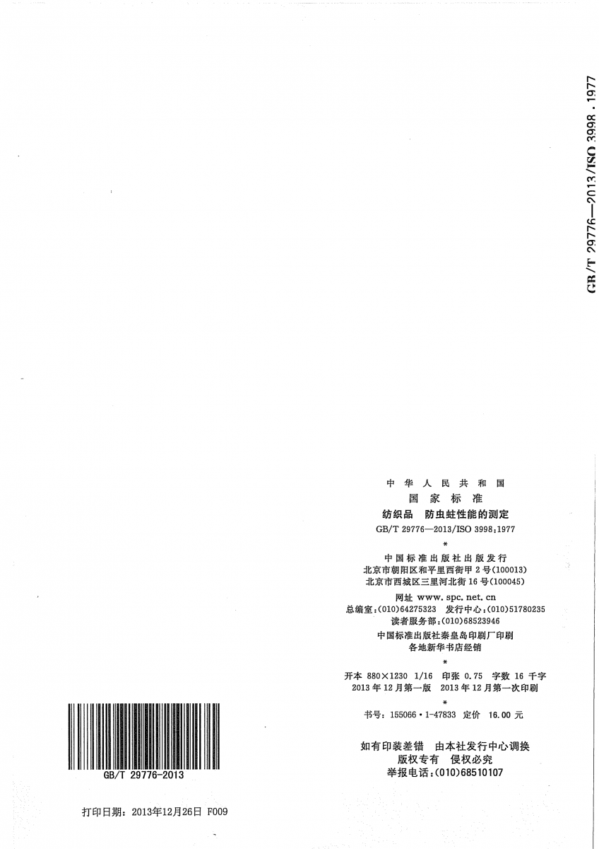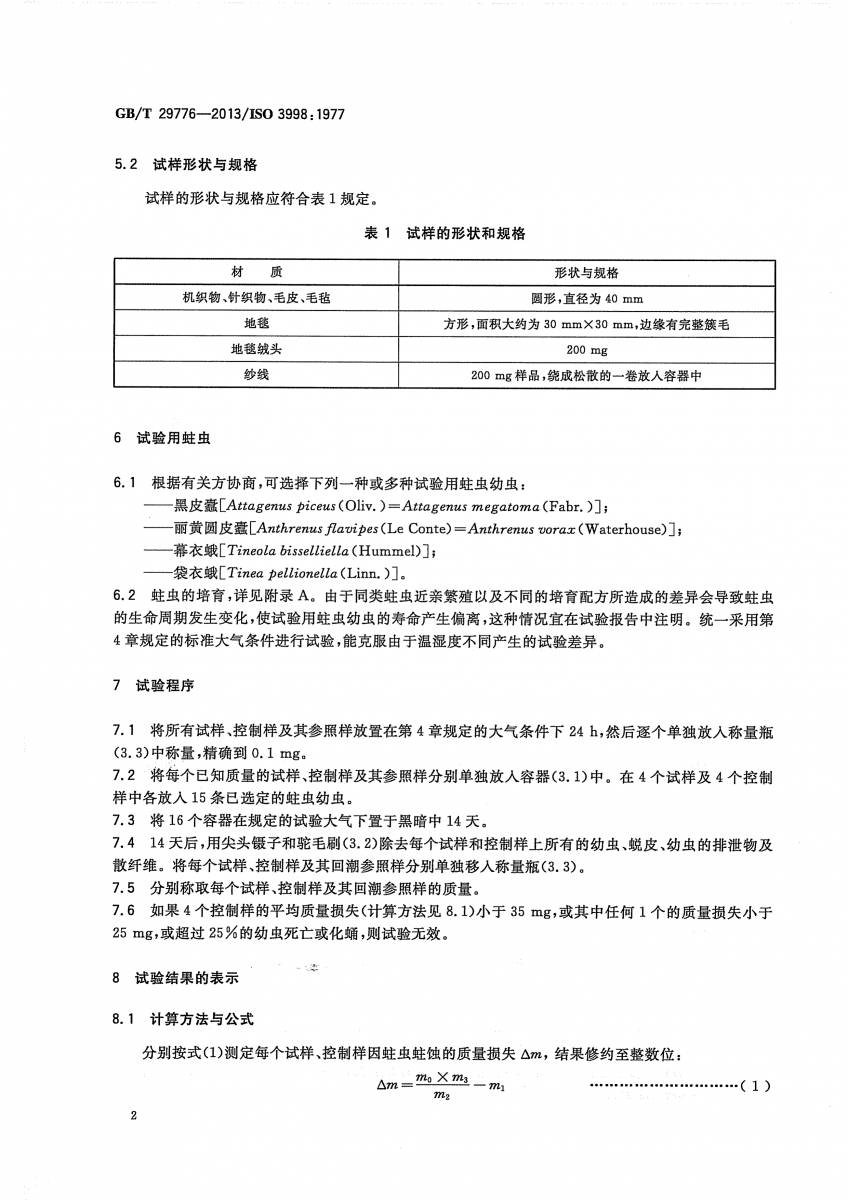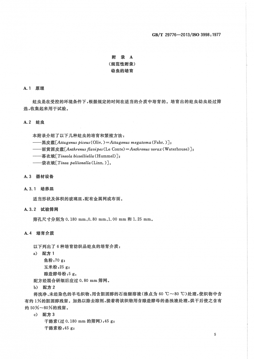 GB/T 29776-2013 纺织品 防虫蛀性能的测定