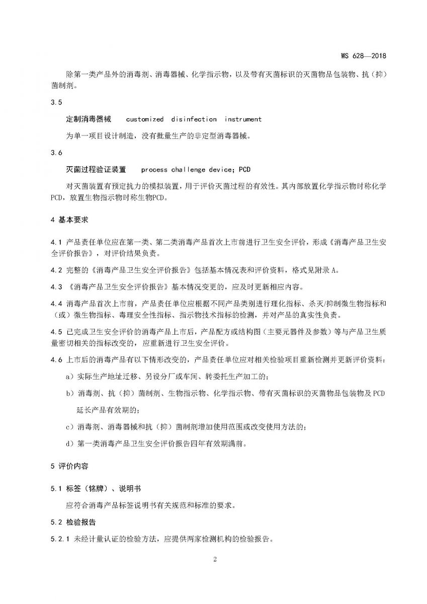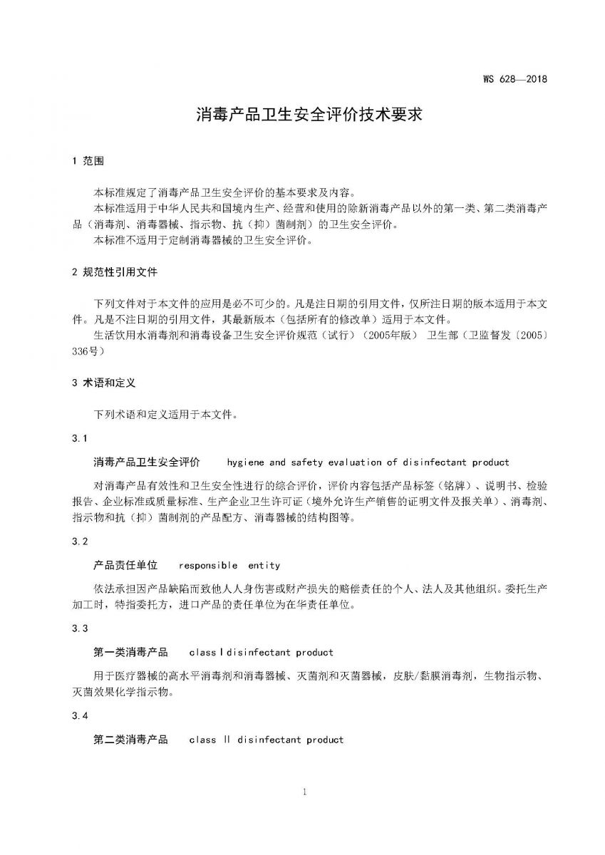 WS 628-2018 消毒产品卫生安全评价技术要求