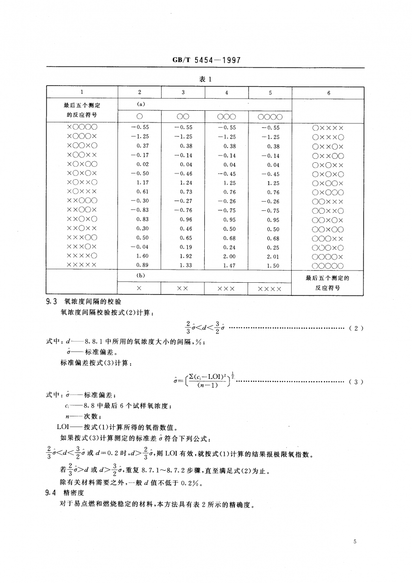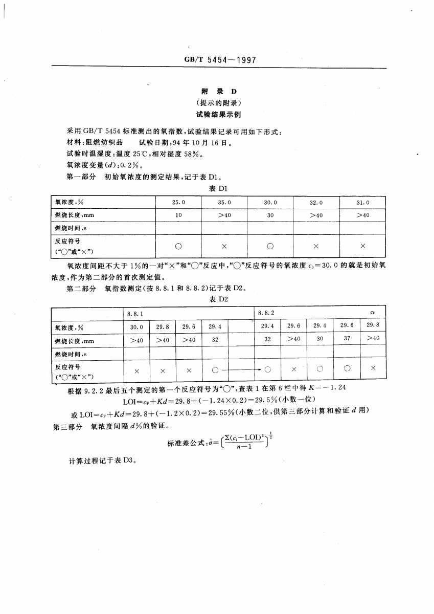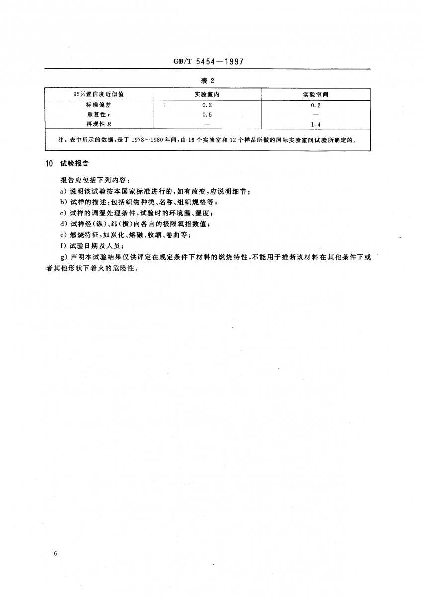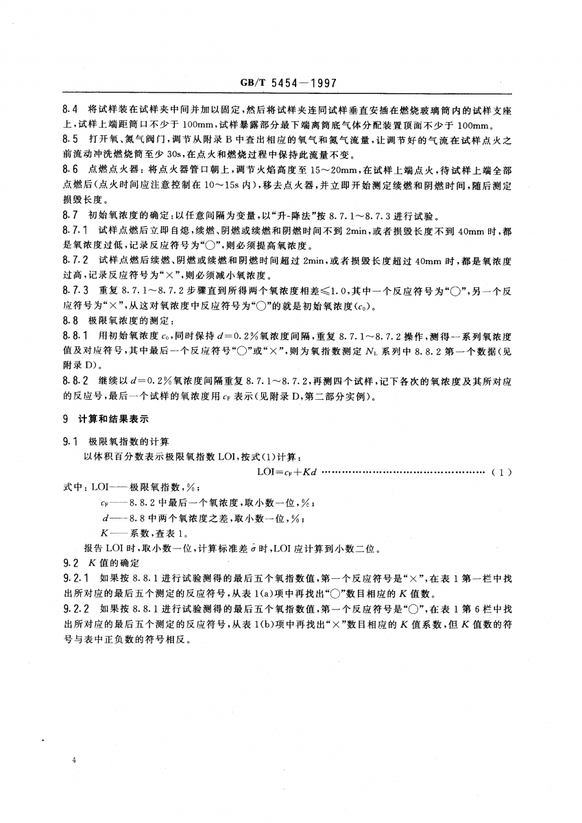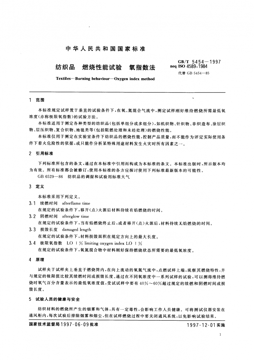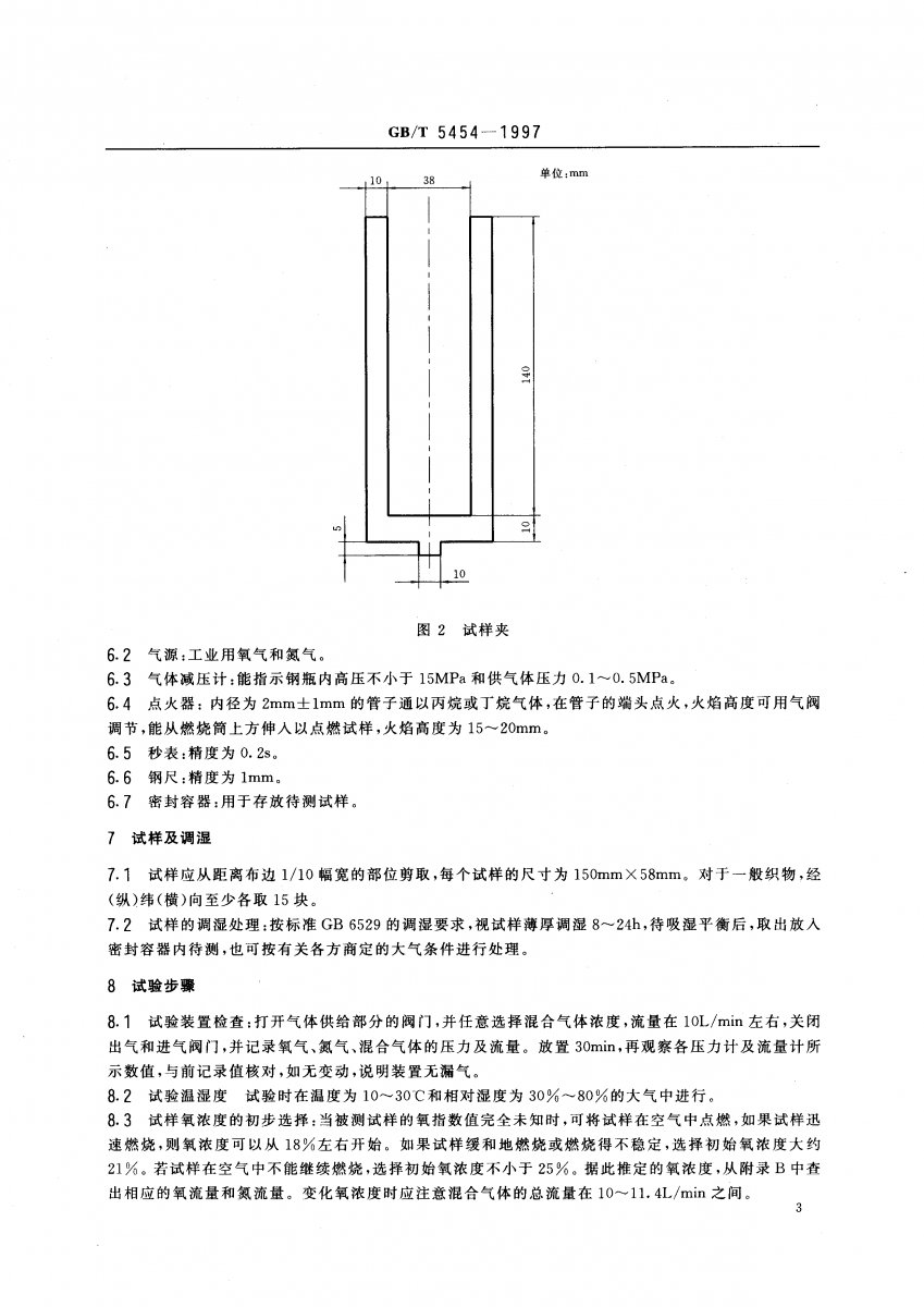 GB/T 5454-1997 纺织品 燃烧性能测试 氧指数法