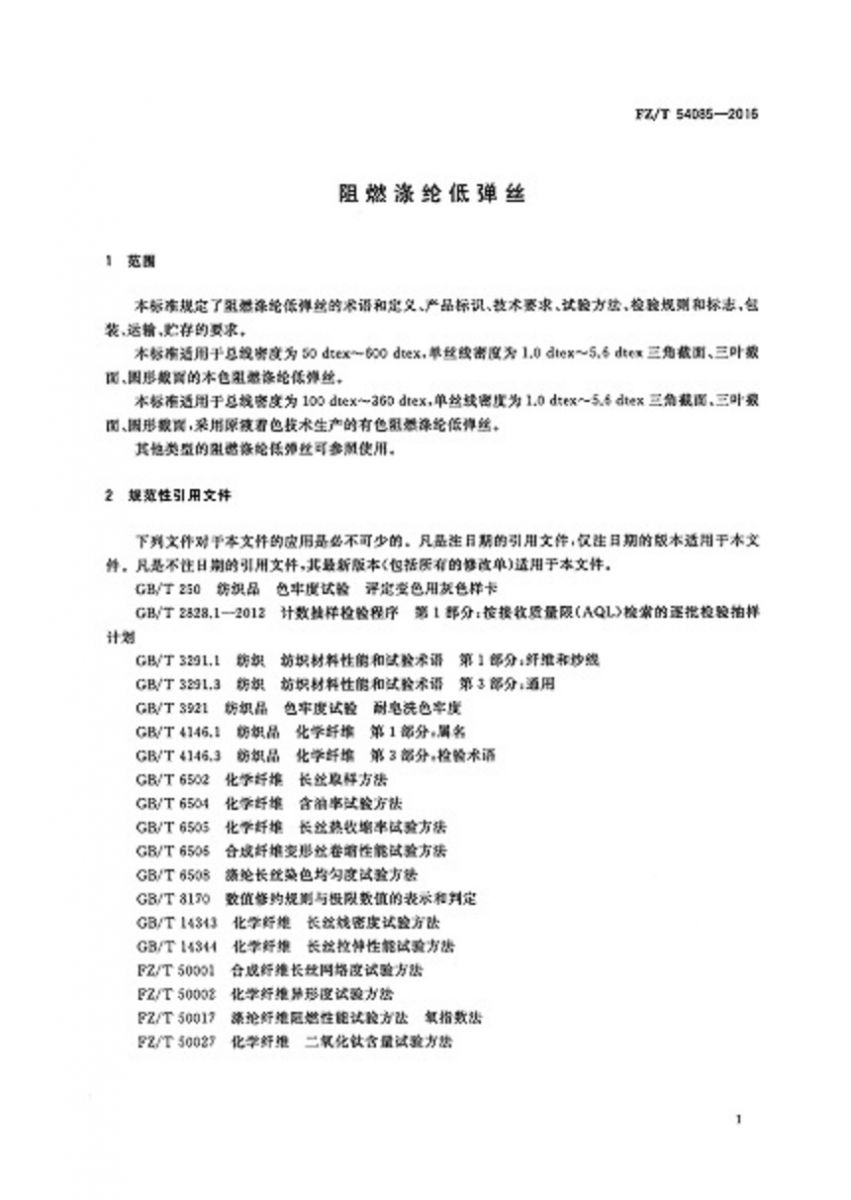 FZ/T 54085-2016 阻燃涤纶低弹丝