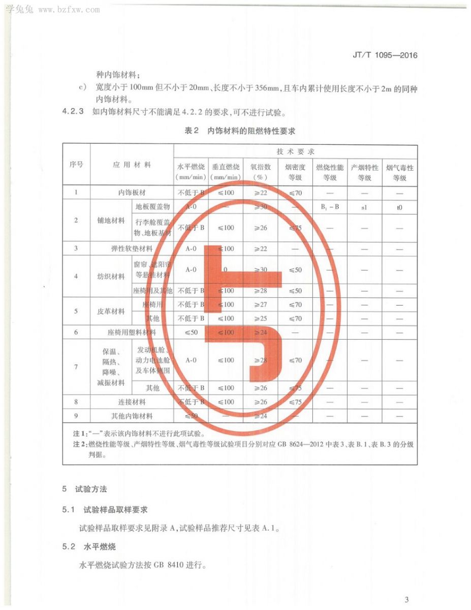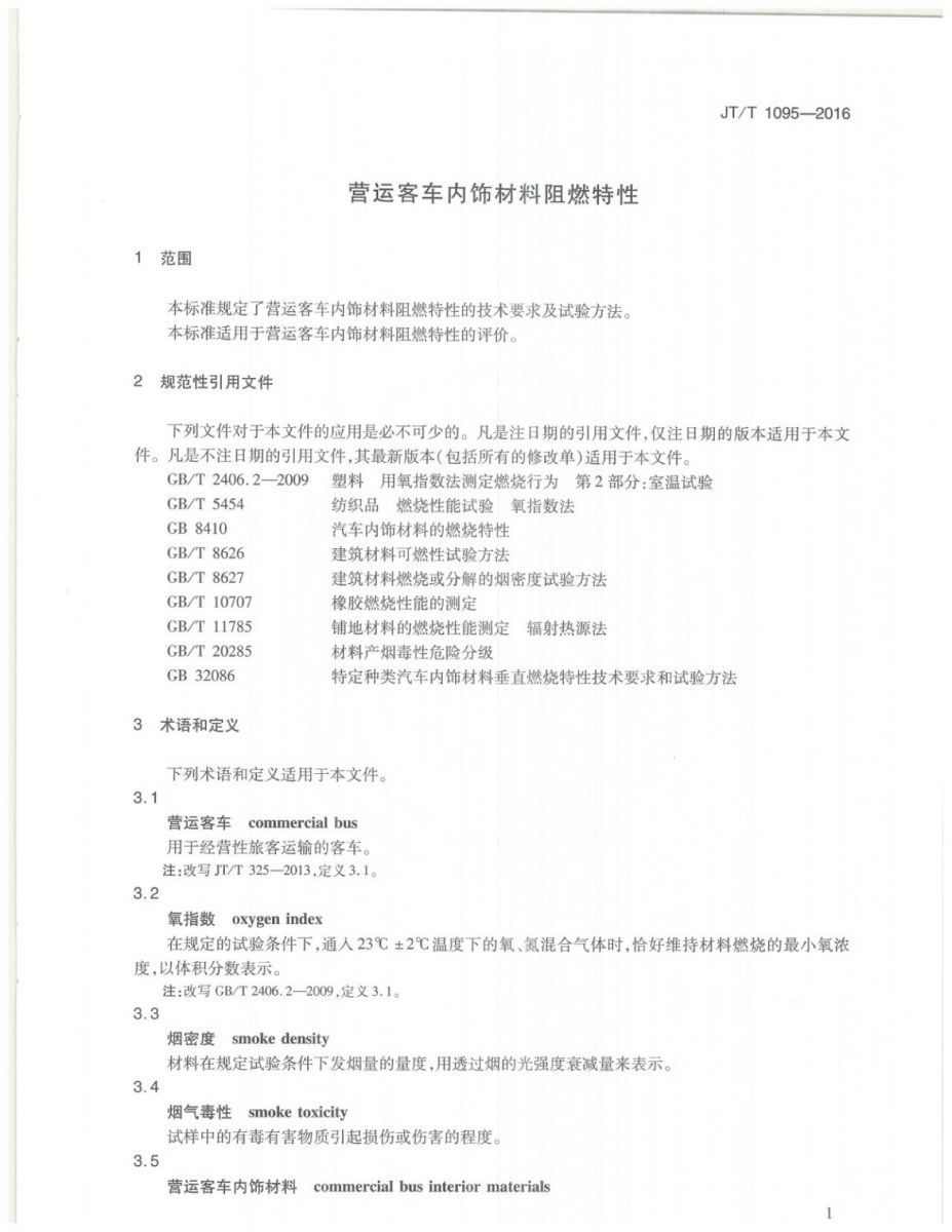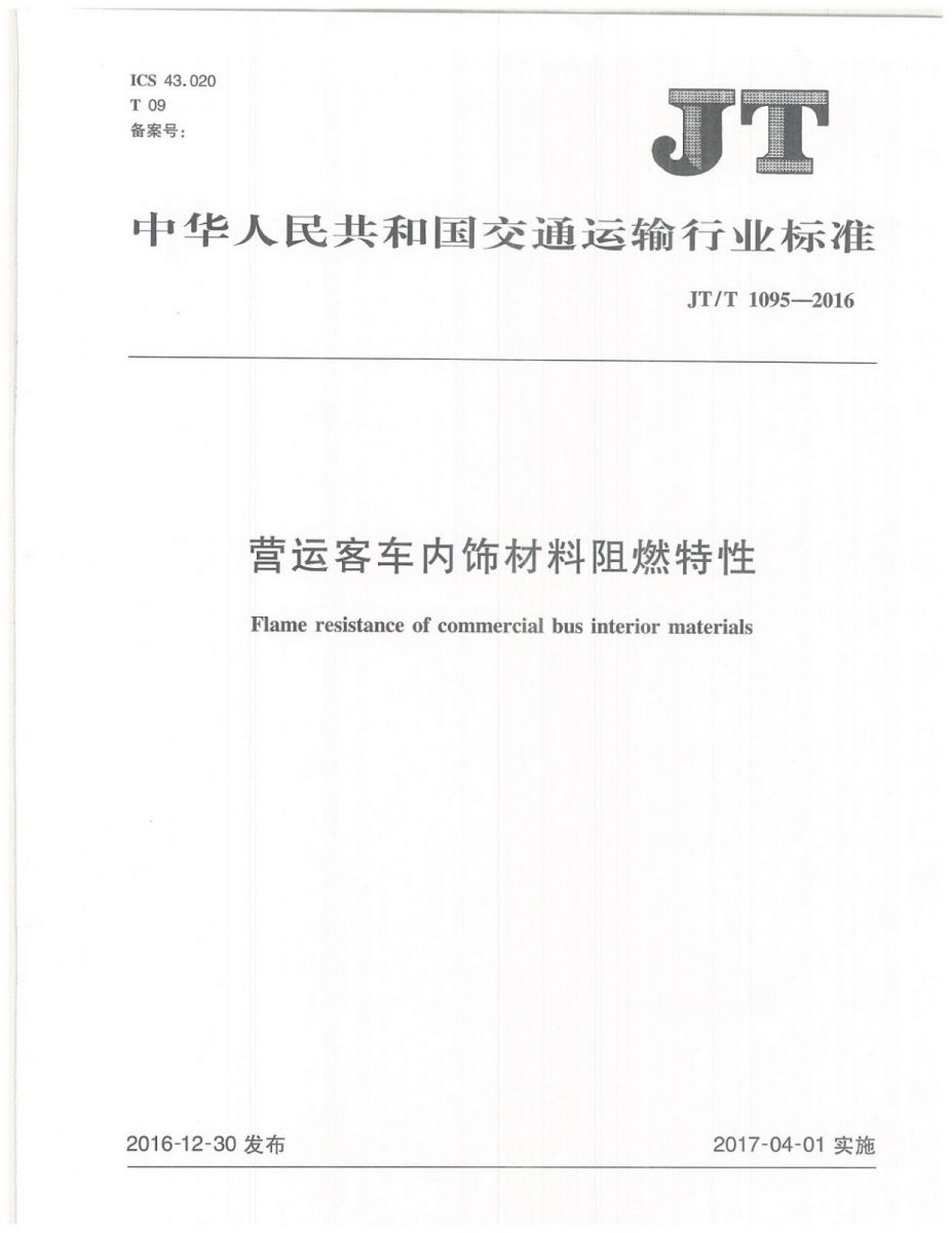 JT/T 1095-2016 营运客车内饰材料阻燃特性