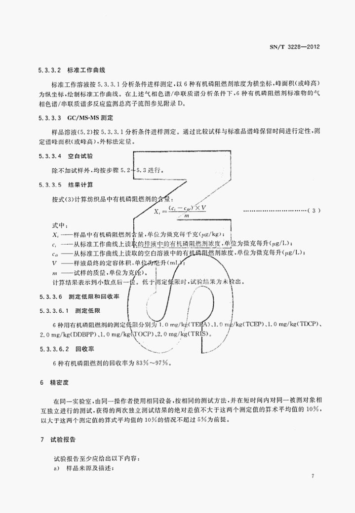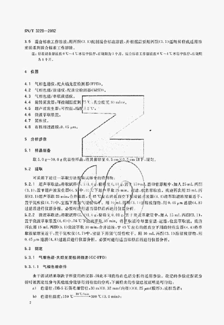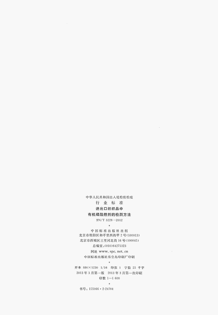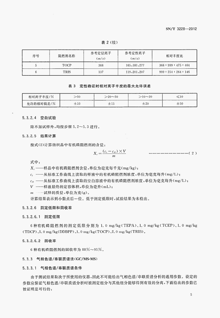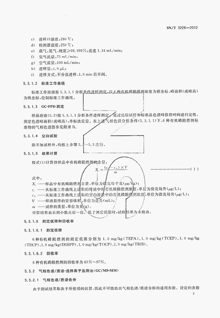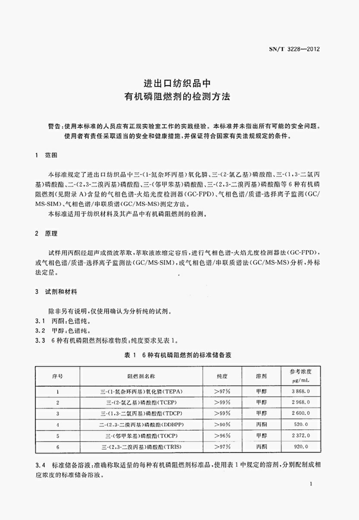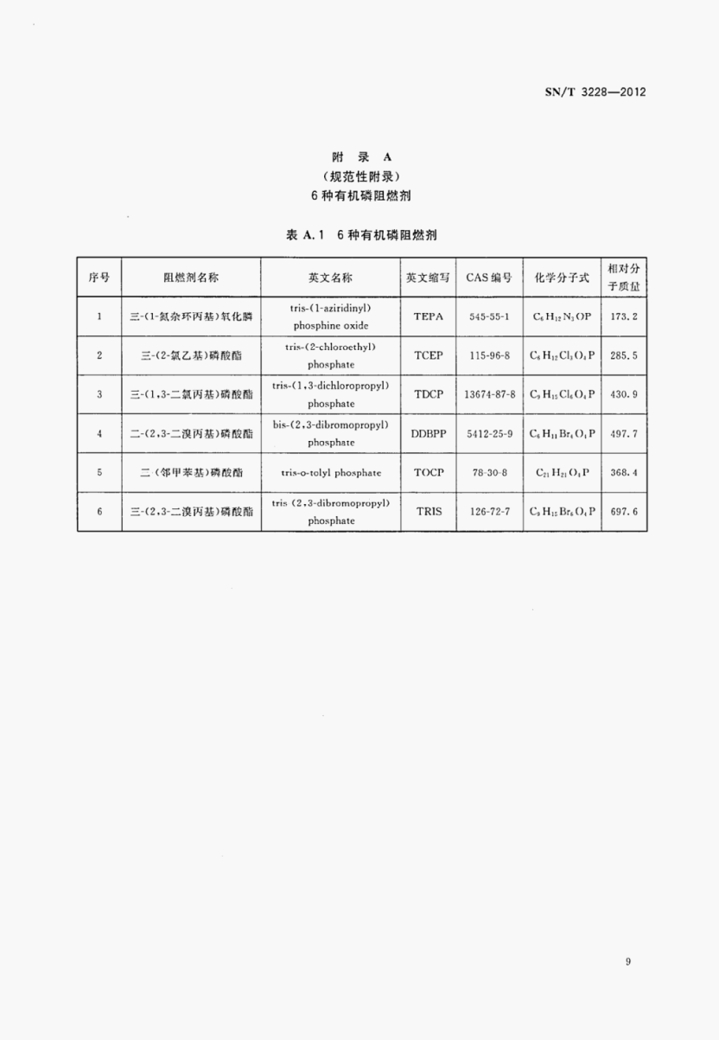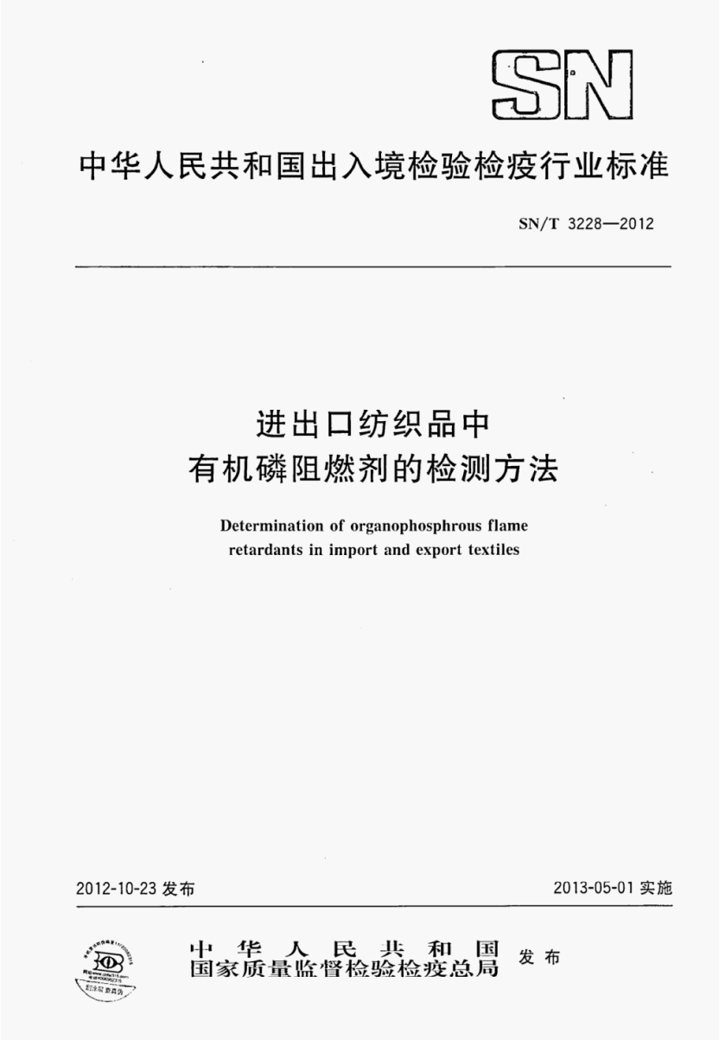 SN/T 3228-2012 进出口纺织品中有机磷阻燃剂的检测方法
