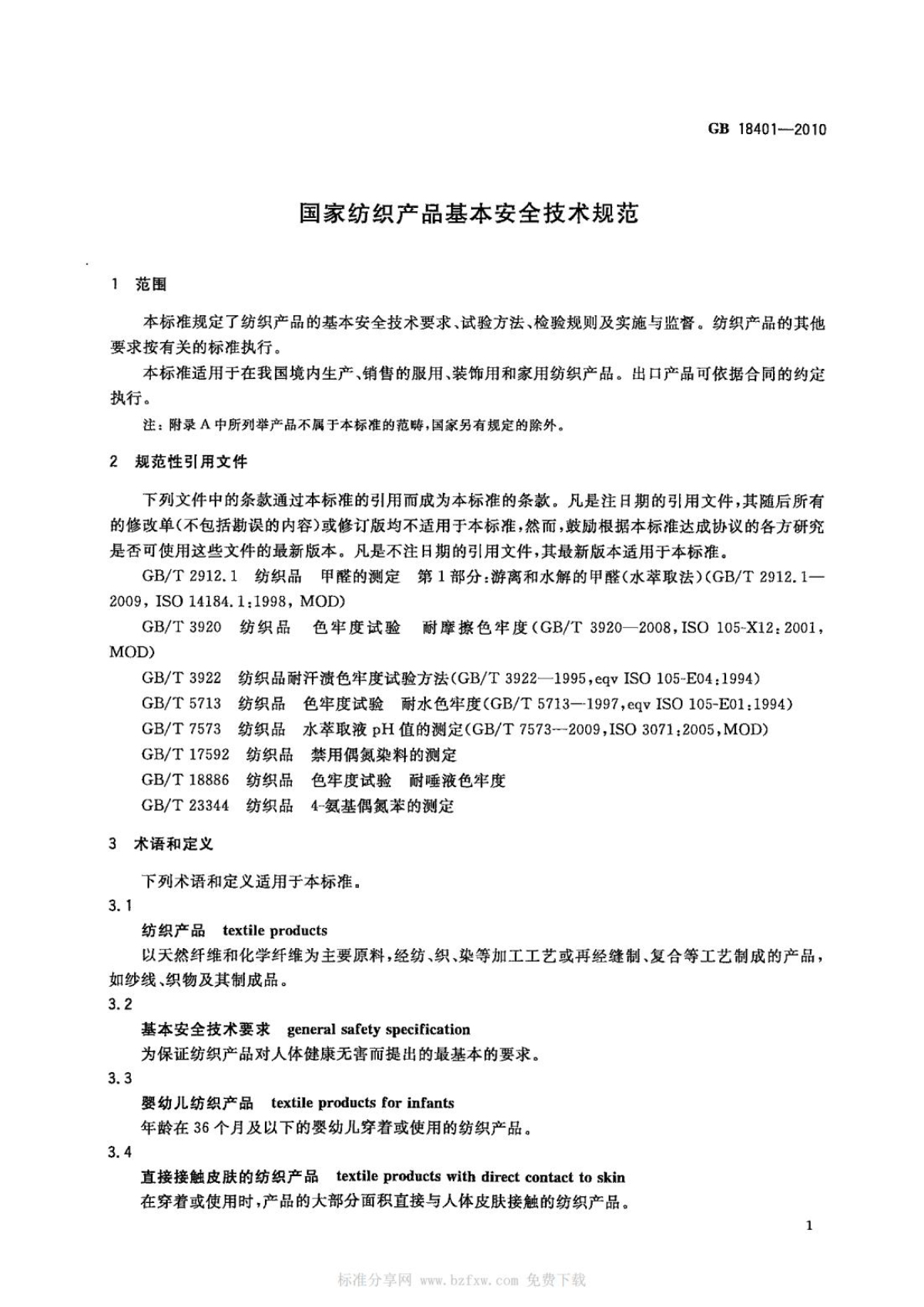 GB 18401-2010 国家纺织产品基本安全技术规范