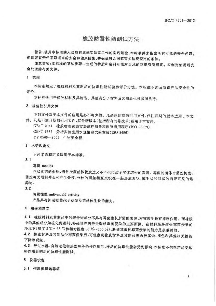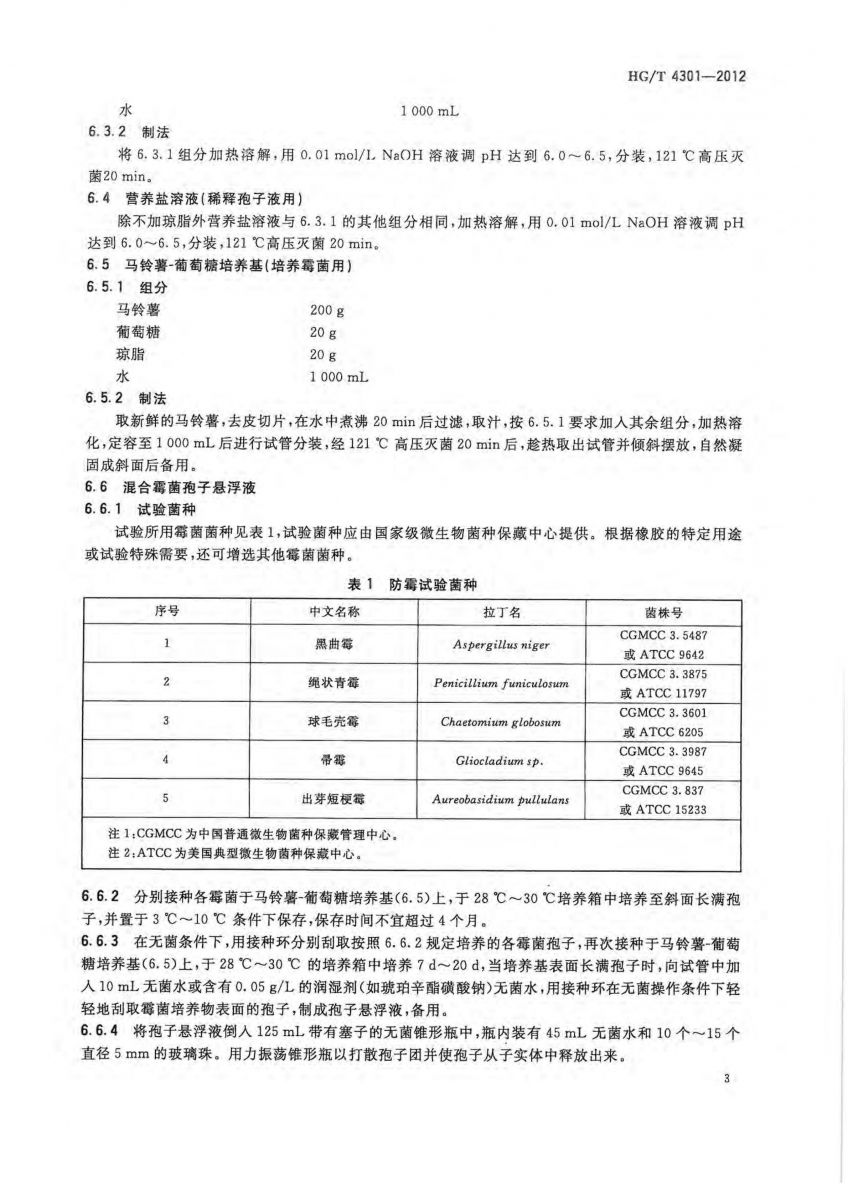 HG/T 4301-2012 橡胶防霉性能测试方法