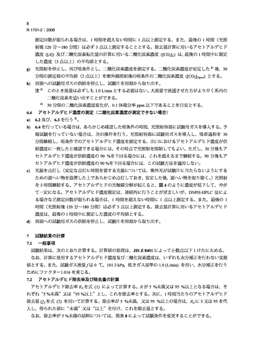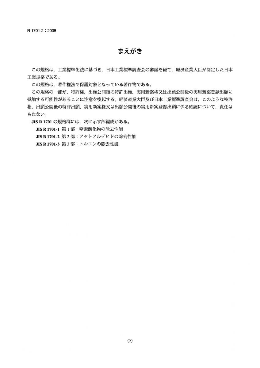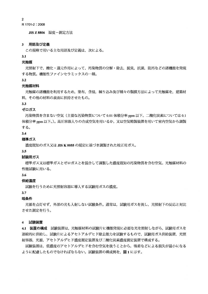 JIS R 1701-2-2008 精细陶瓷(高级陶瓷、高级工业陶瓷).光催化材料空气净化性能的试验方法.第2部分乙醛的脱除
