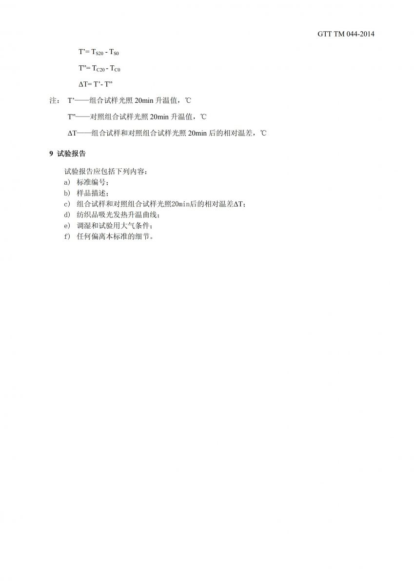 GTT TM 044-2014 纺织品 吸光发热性能试验方法