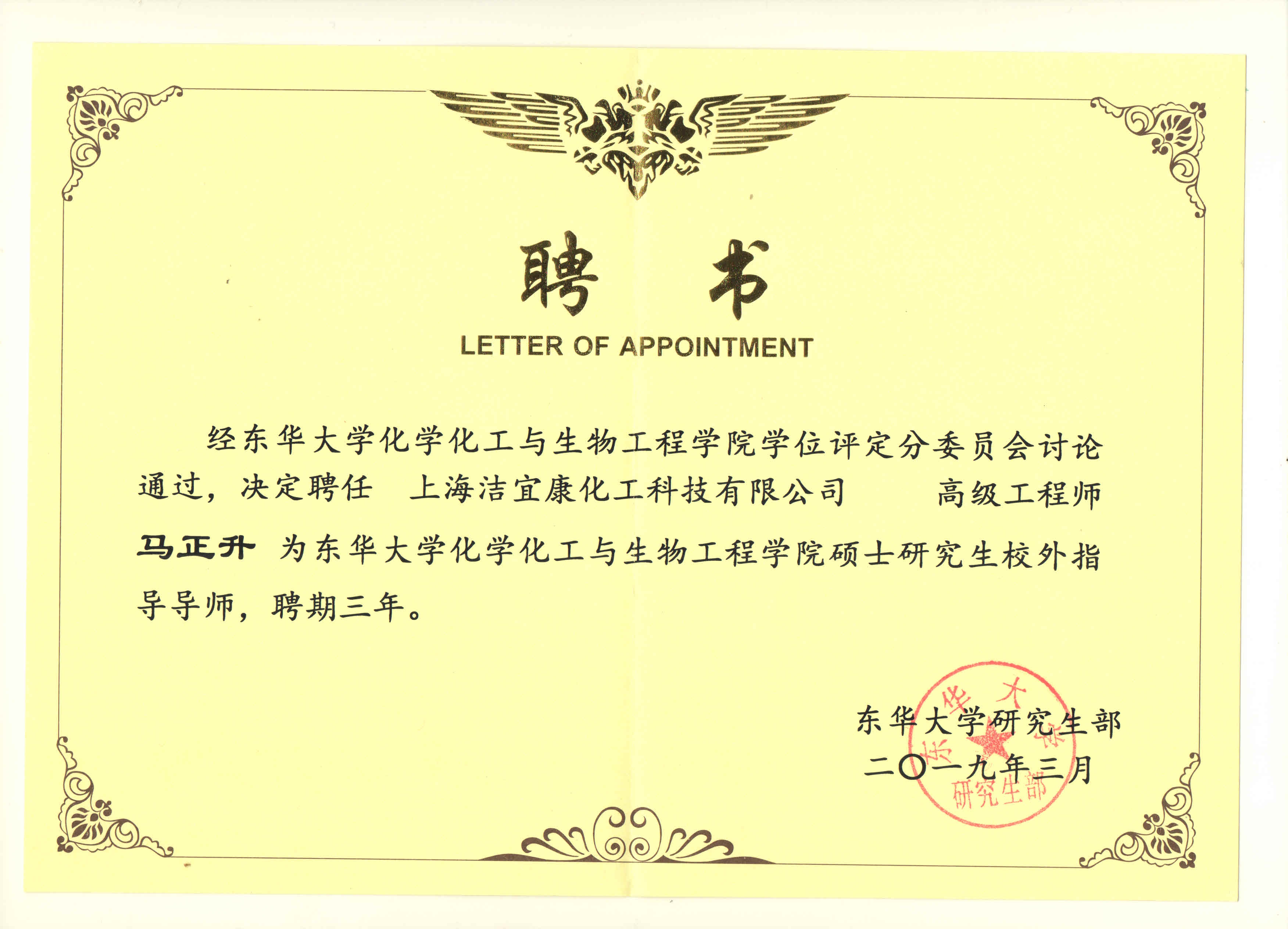 东华化工学院硕士生校外指导导师