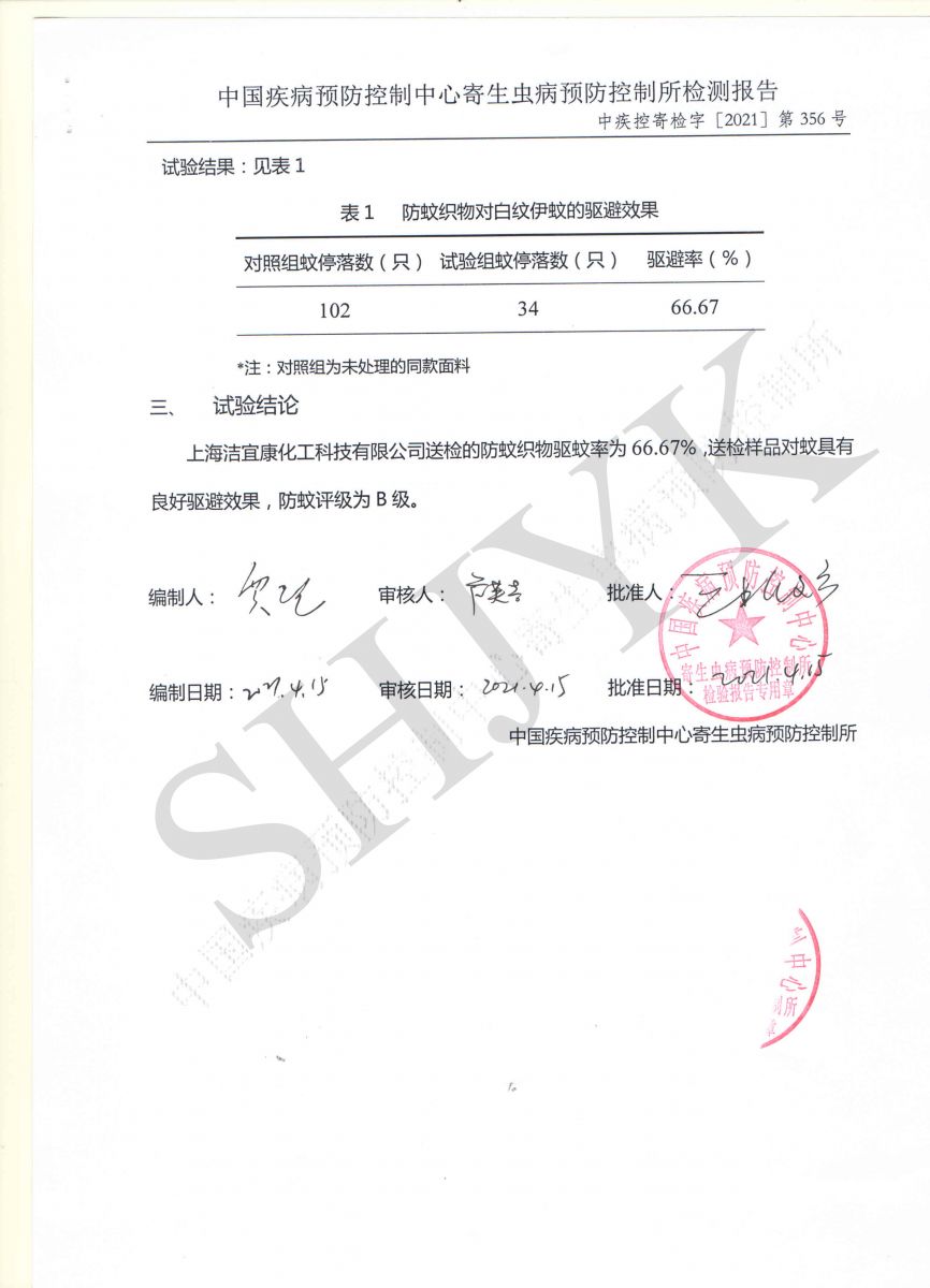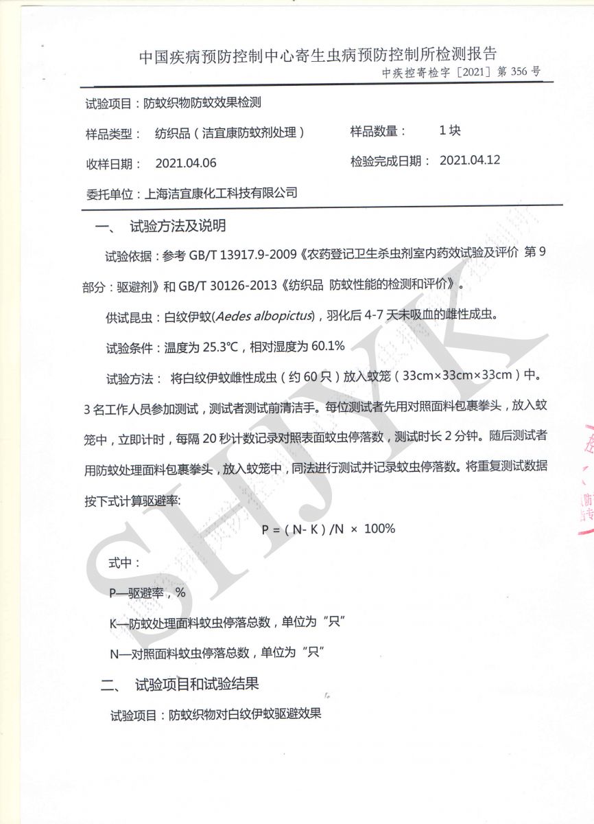防蚊织物防蚊性能测试-- 中国疾控中心