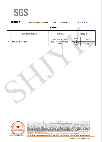 静电压半衰期-机织红色面料 (抗静电剂 JYK AT-15处理)--SGS-中文