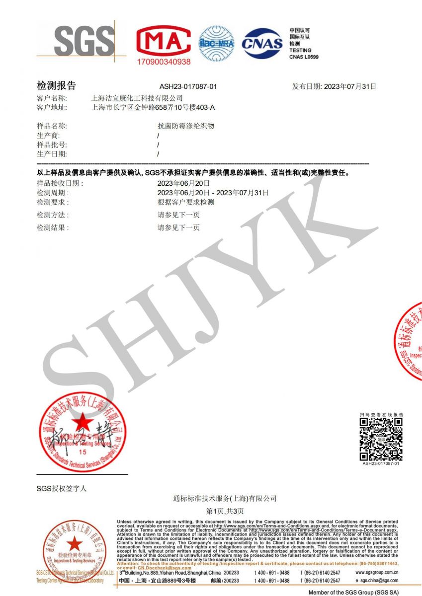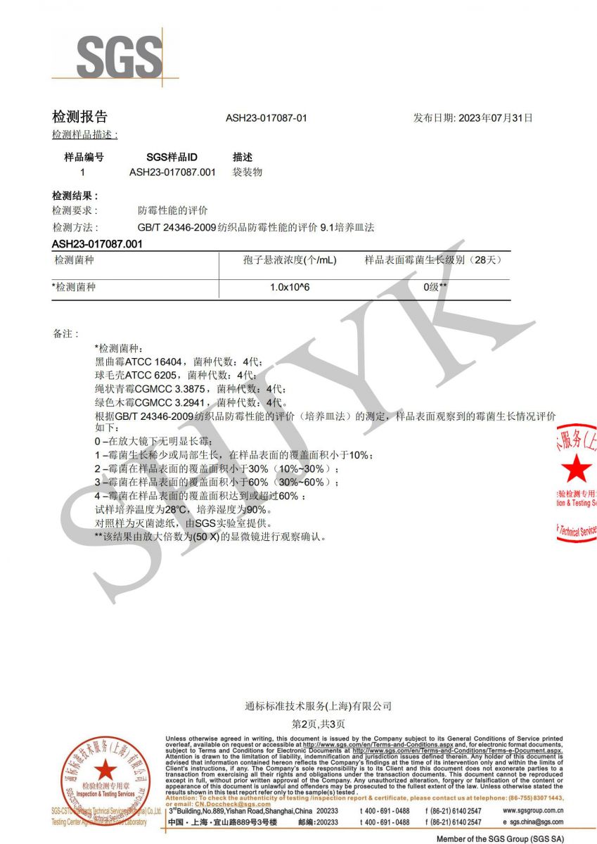 抗菌防霉涤纶织物-防霉测试-SGS