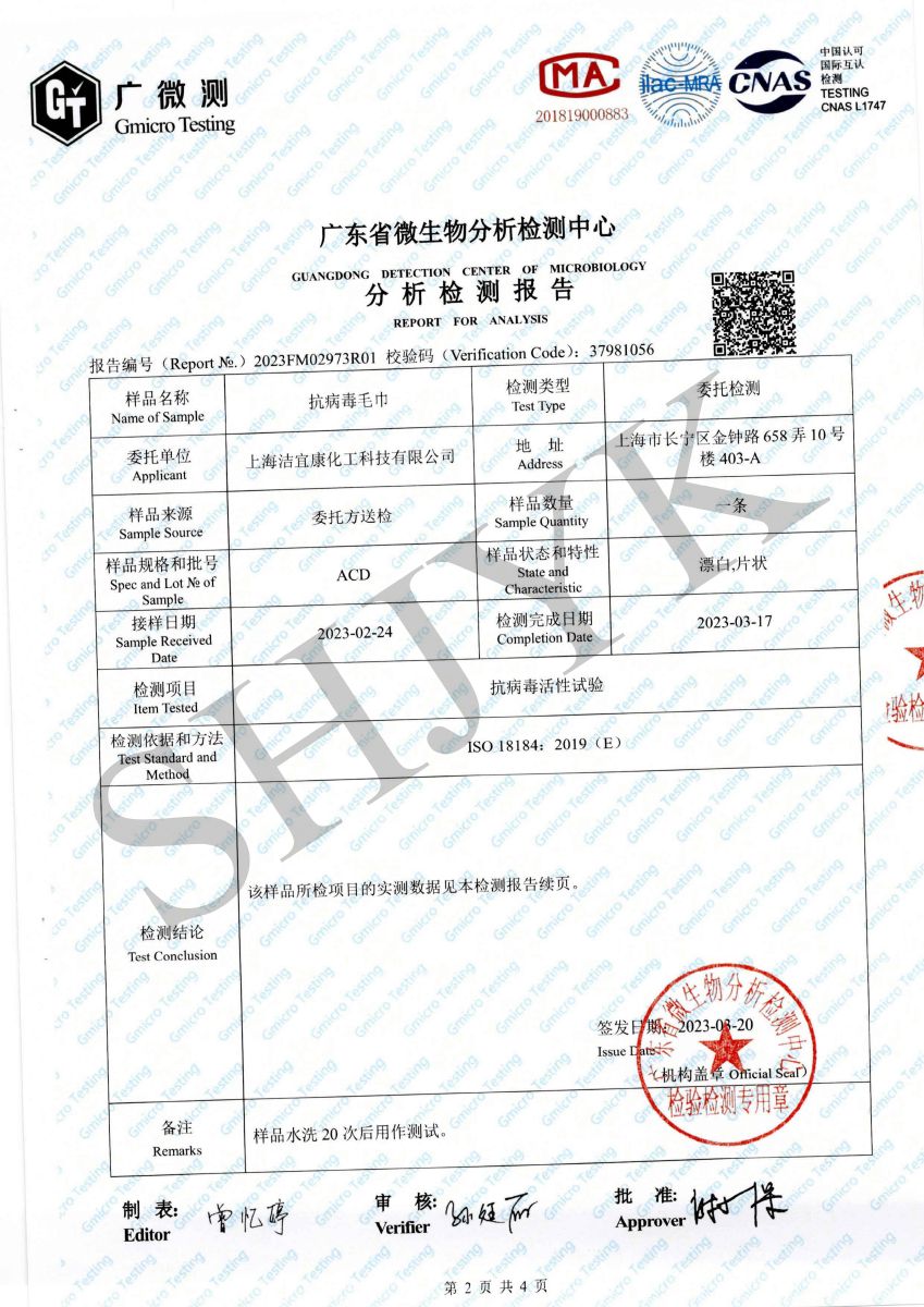 抗病毒毛巾ACD-抗病毒测试-SGS