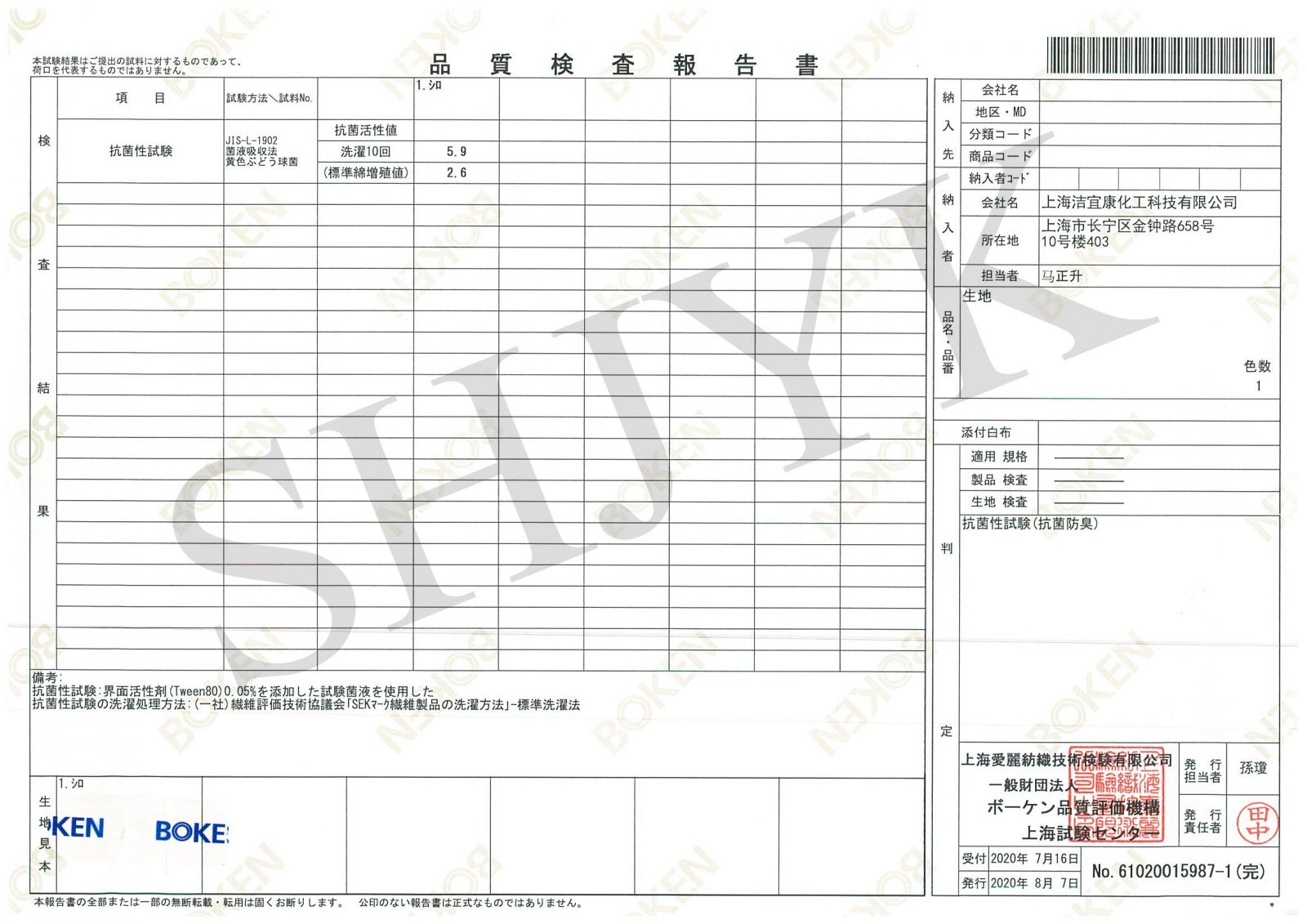 Antibacterial test (washed 10 times)-JYK ABDO-100- BOKEN
