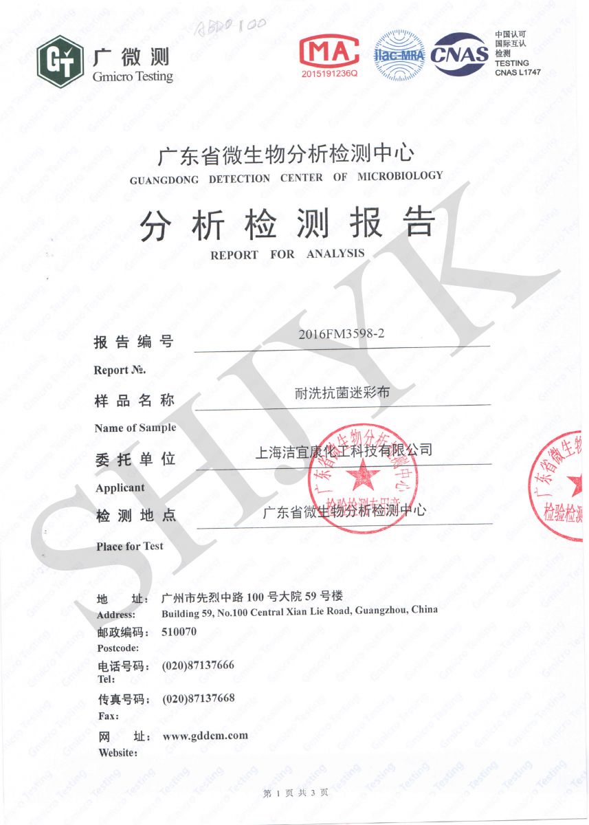 Camouflage clothing - Antibacterial test -GB--Gmicro Testing