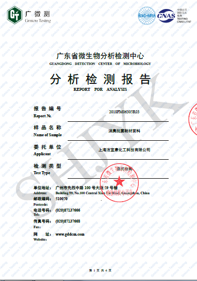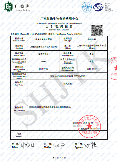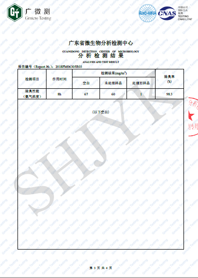 Ammonia test after 8 hours - Deodorant antibacterial upper material -Gmicro Testing