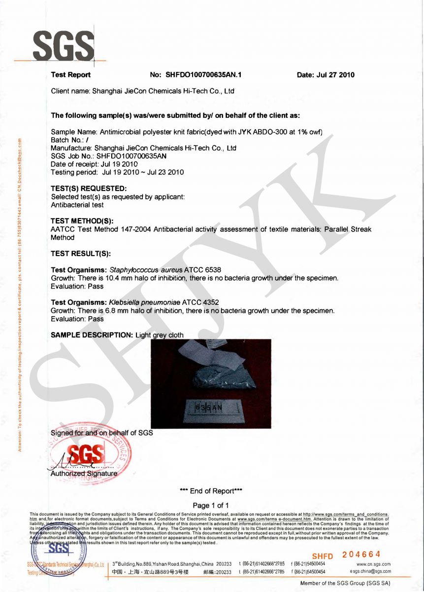AATCC 147/100 test-JYK ABDO-300 (1% dosage)--SGS-in English