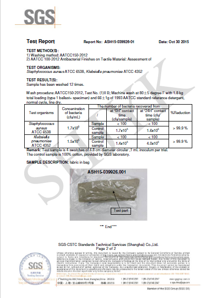 US Standard antimicrobial test (Pneumococcus)- Cotton socks -SGS- in English