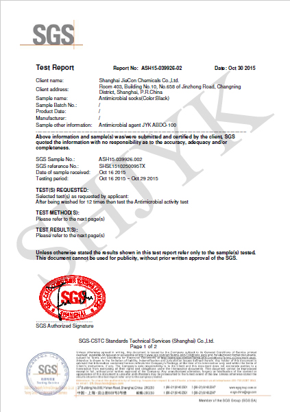 US Standard antibacterial test - Antibacterial cotton socks -SGS-in English