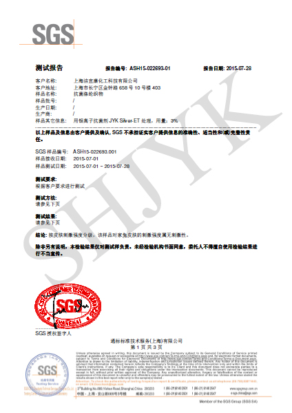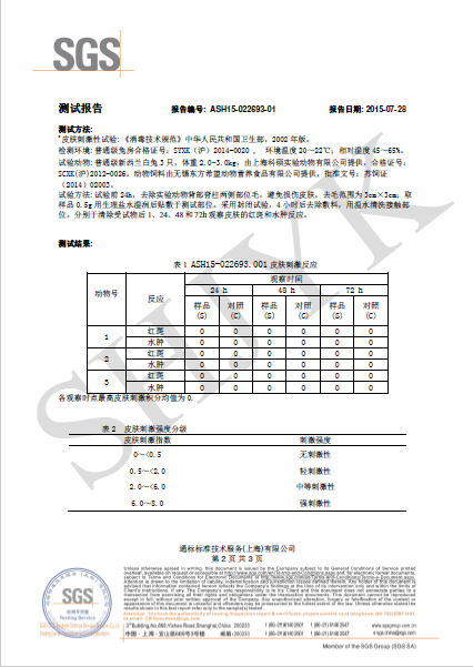 皮肤刺激性测试报告-银离子抗菌织物--SGS