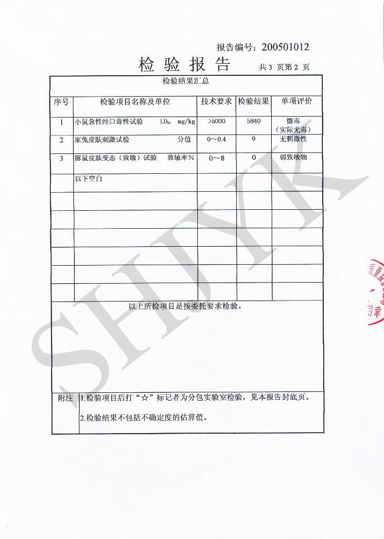 毒理性检测报告-防螨抗菌剂 JYK AMB-100