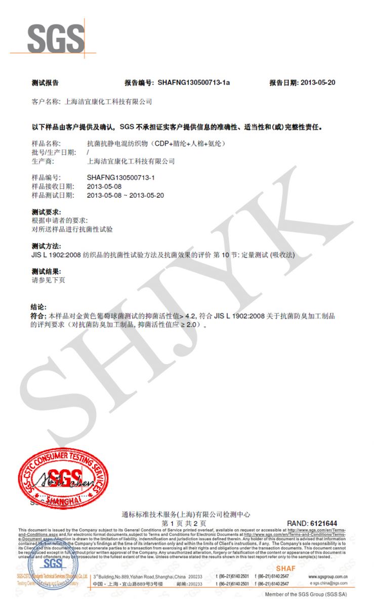抗菌测试 (W=0)-抗菌抗静电混纺织物--SGS