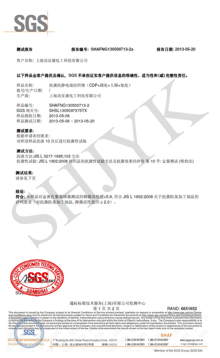 抗菌测试 (W=10)-抗菌抗静电混纺织物--SGS