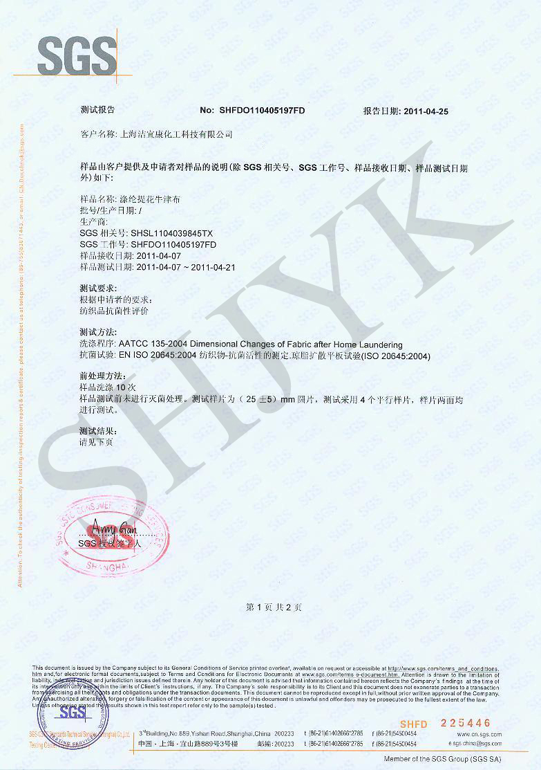ISO抗菌测试报告-涤纶提花牛津布--SGS-中文