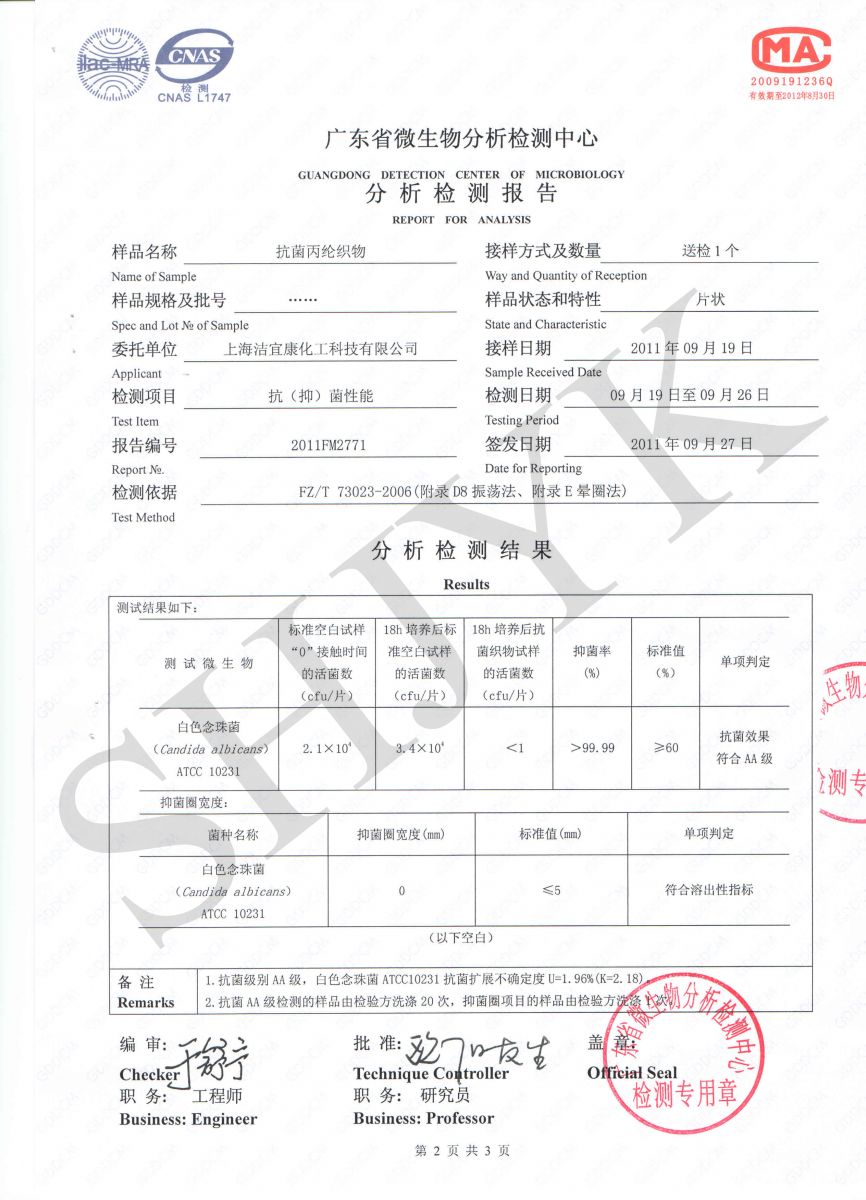 耐洗20次白色念珠菌-抗菌丙纶--广微测