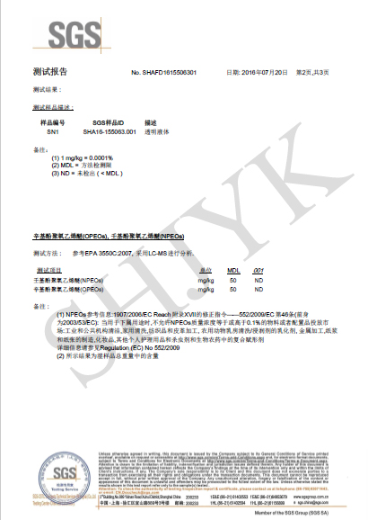 JYK UV-130不含 APEO的测试报告--SGS-中文