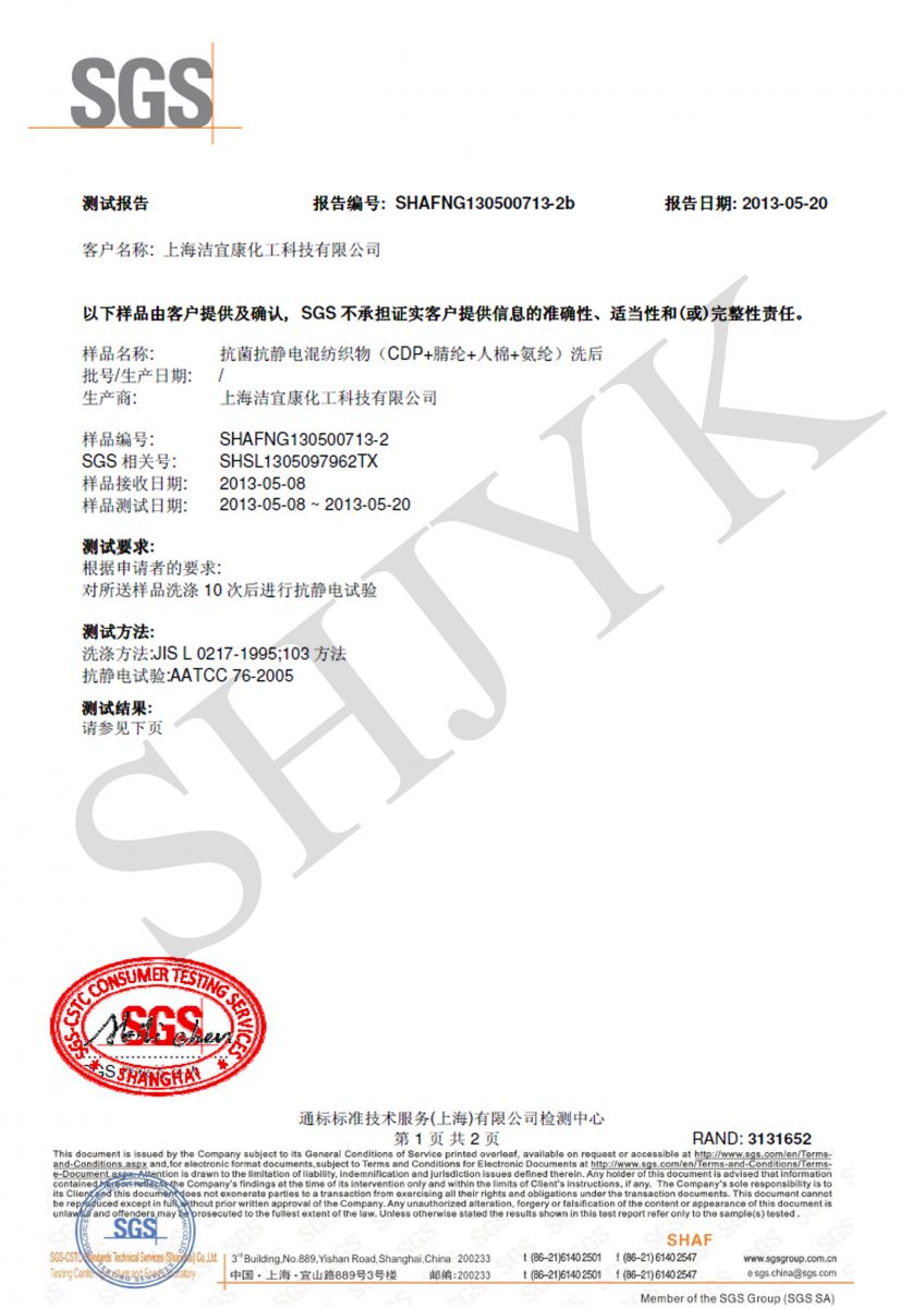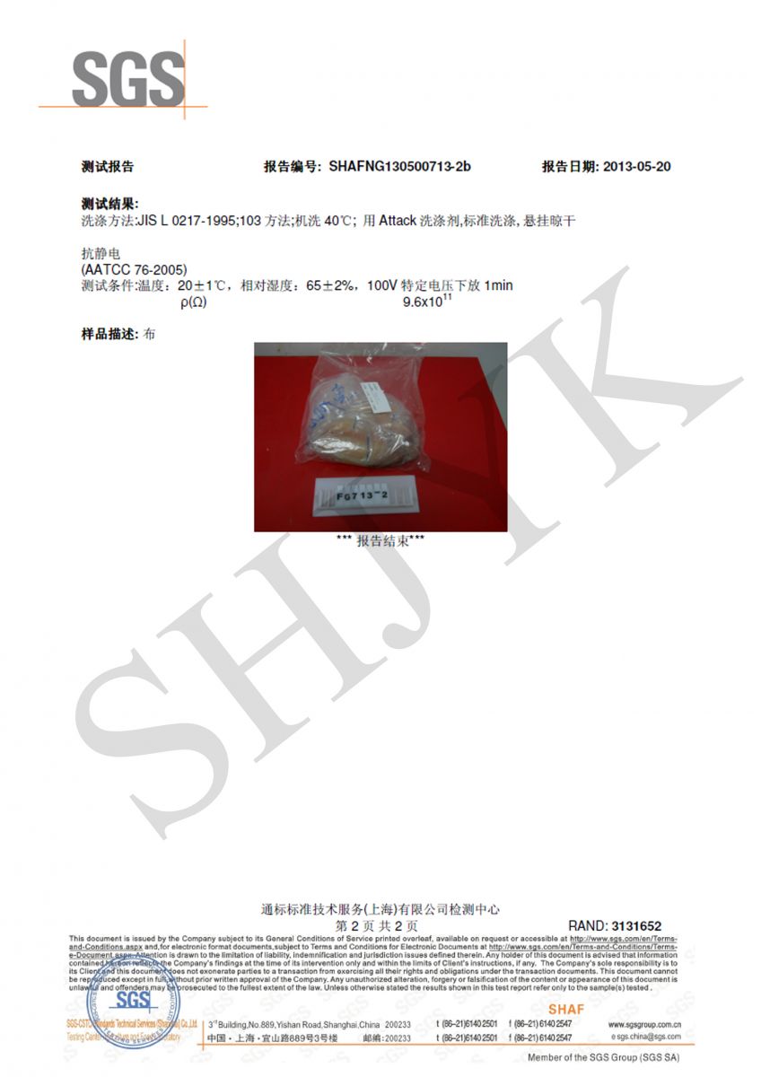 抗静电测试 (洗后)-混纺织物--SGS-中文