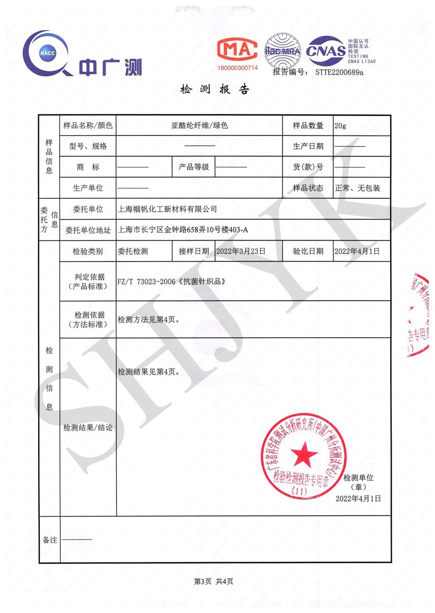 亚酷纶抗菌性能测试-AAA--中广测