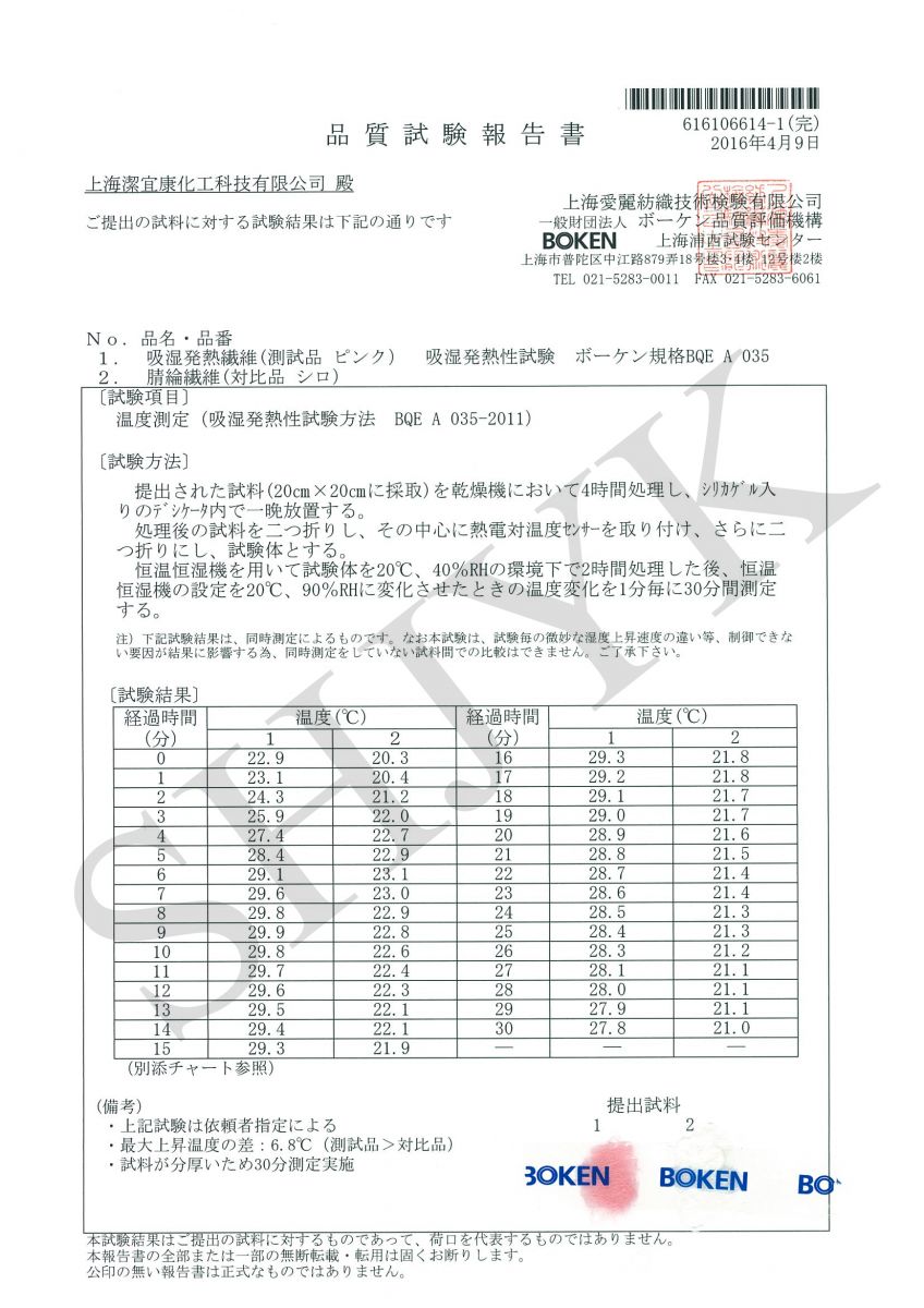 (舒热丝/腈纶) 吸湿发热性能测试对比--BOKEN